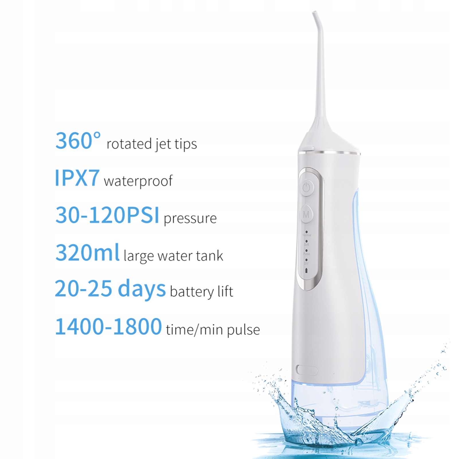 2. Эффективный уход за полостью рта: этот безупречный орошечный ирригатор предлагает 4 регулируемых режима очистки: нормальный, мягкий, импульс и DIY. С регулируемым давлением потока от 30 до 120 фунтов на кв.