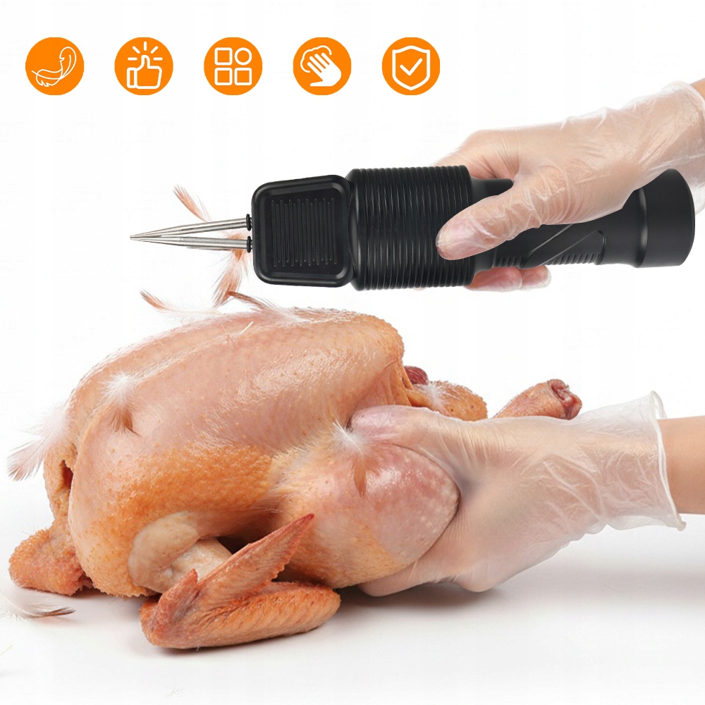 Электрическое ощипывание на высокой скорости эффективно удаляет тонкие перья, оставляя птицу чистой и готовой к запеканию. Электрический инструмент для ощипывания курицы не застревает в мясе, обеспечивая его целостность.