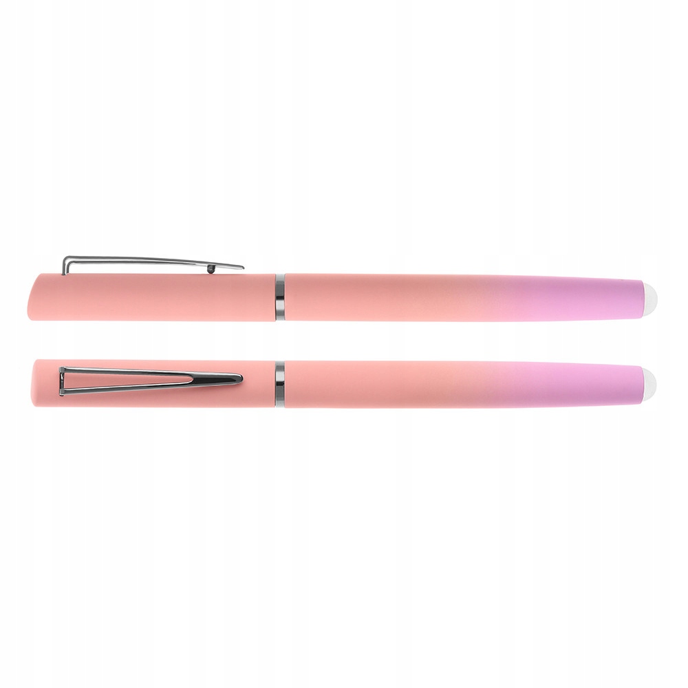 Перьевая ручка пастельных тонов изготовлена из прорезиненного пластика, обеспечивающего удобный хват. На другом конце ручки имеется ластик, с помощью которого можно стереть написанный текст. В комплекте идет картридж со стираемыми чернилами.