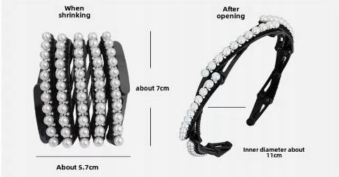 Perłowa opaska na głowę, spinka do włosów, zwijana, łatwa do noszenia, dla kobiet i dziewcząt, czarna