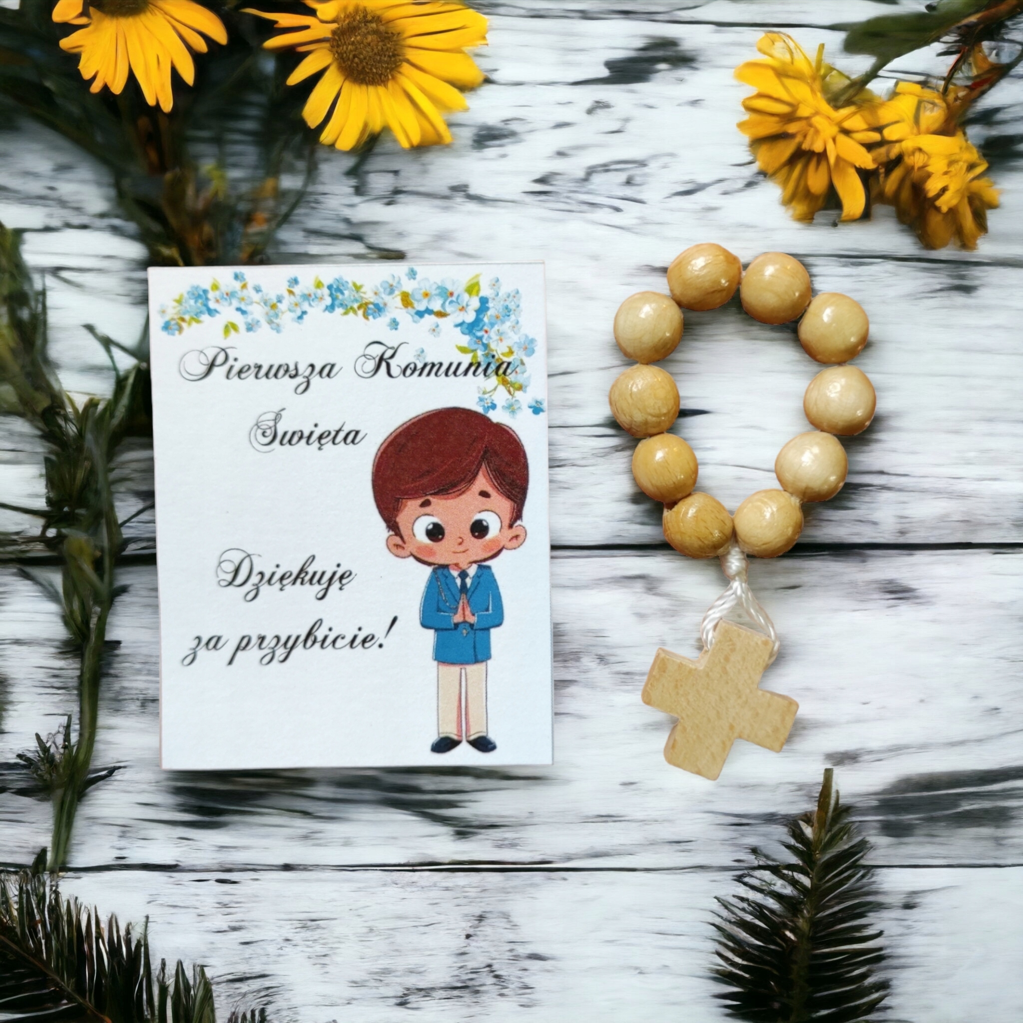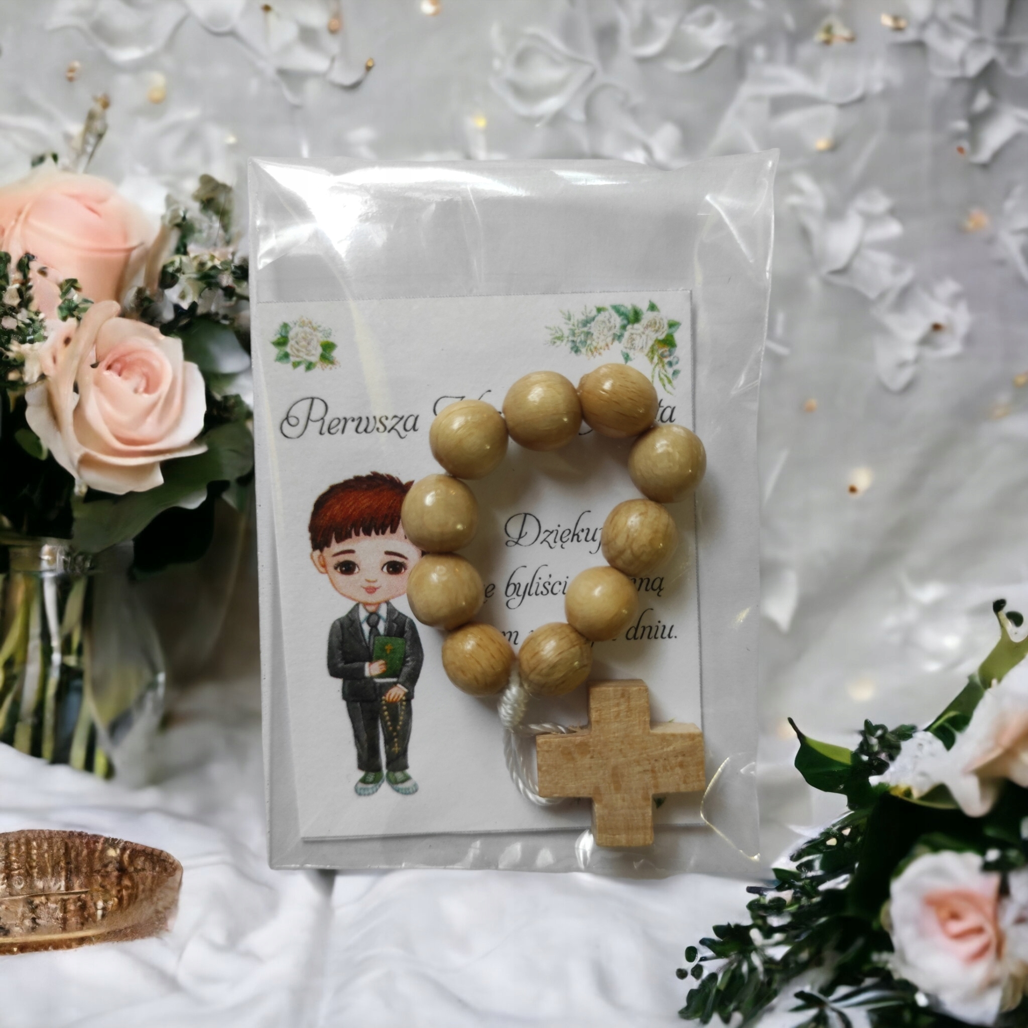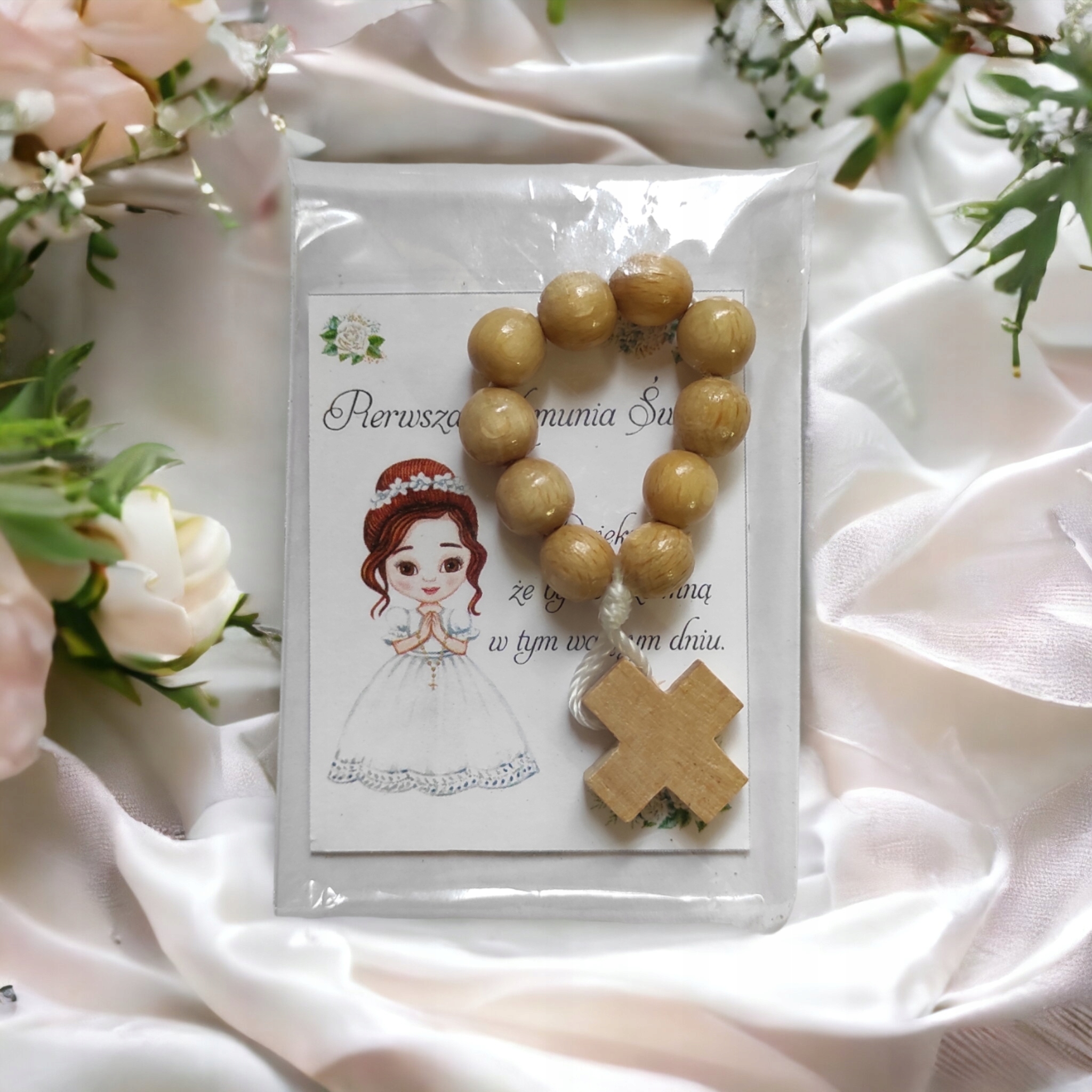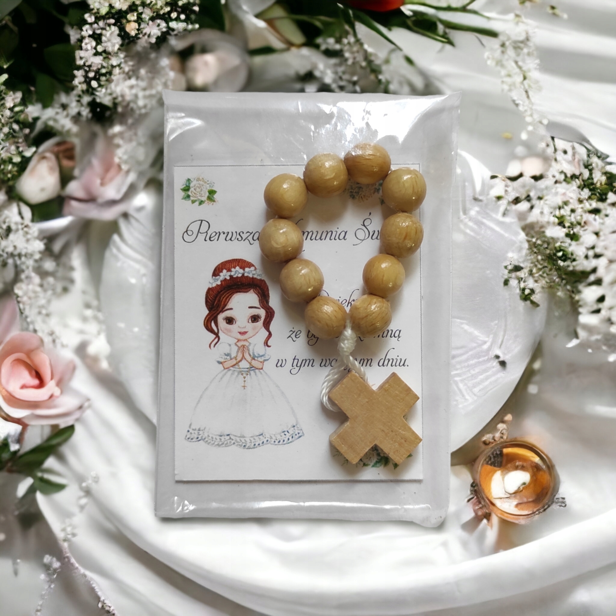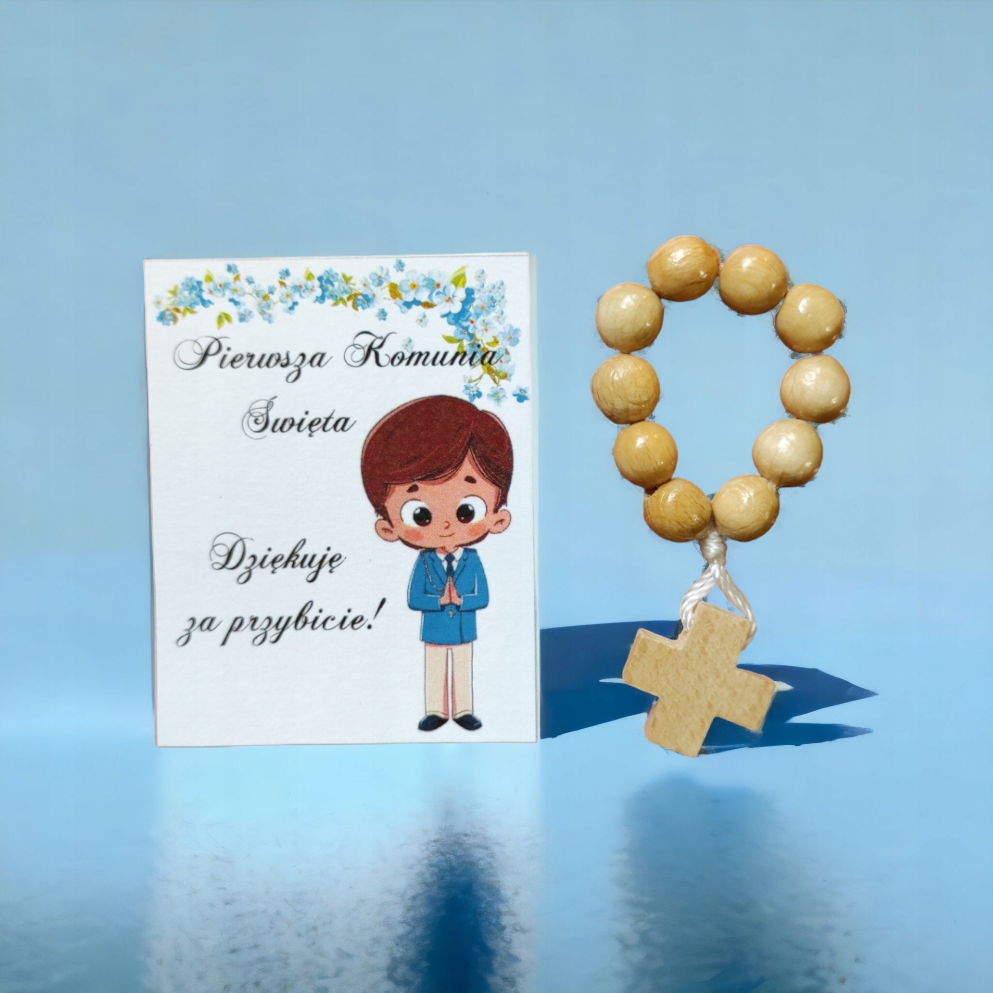 Сувенир для гостей по случаю Святого Причастия – БЛАГОДАРСТВЕННАЯ ОТКРЫТКА И ЧЕТКИ