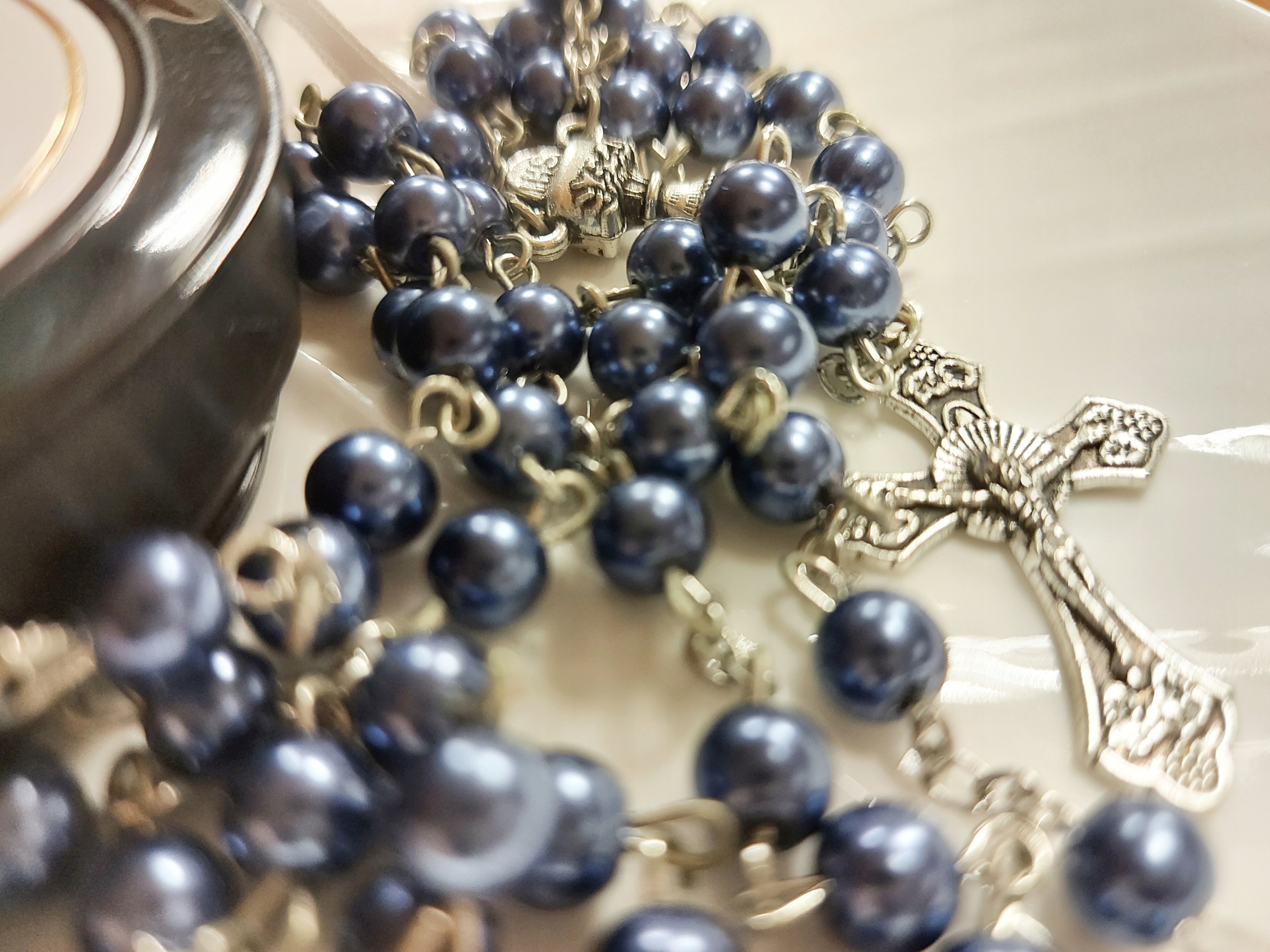 Чётки к Первому Причастию – темно-синий сверкающий шарик