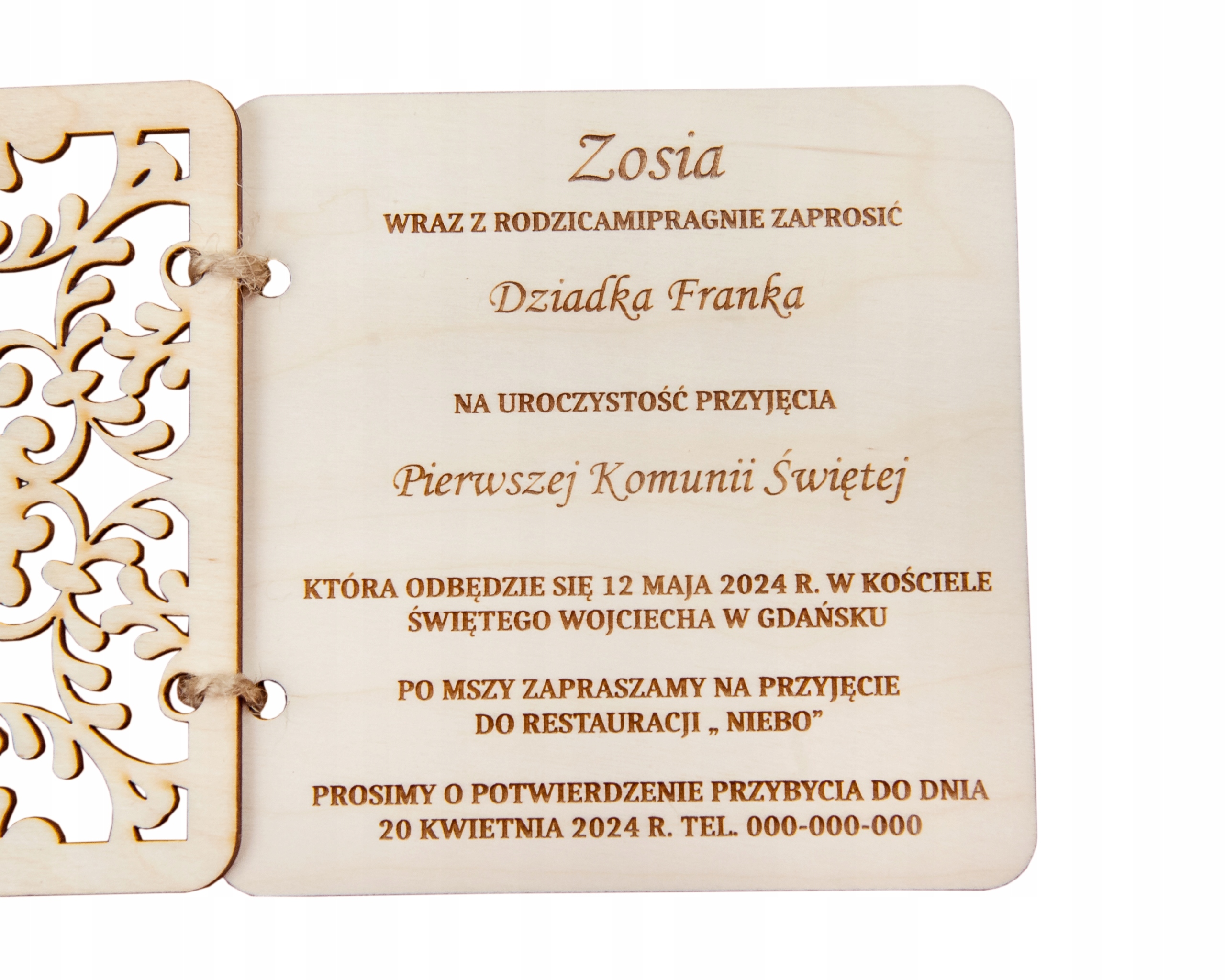 Приглашения к Первому Причастию, дерево, персонализация + аксессуары
