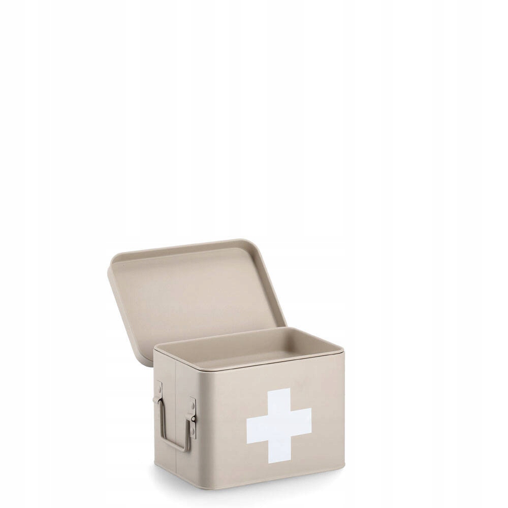 - Декоративный контейнер для лекарств: Аптечка в стиле ретро. Бежевая металлическая банка украшена большим красным крестом — универсальным символом, который облегчит распознавание аптечки в экстренной ситуации.