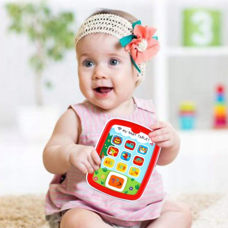 Привлекательная игрушка имеет реалистичный вид и 10 больших кнопок, на которые ребенок может легко нажимать. Каждая кнопка отвечает за разные функции: от звуков животных, букв, цифр до вопросов. Игрушка оправдает ожидания каждого современного малыша. Планшет запрограммирован на английском языке, поэтому ваш ребенок будет иметь с ним постоянный контакт с первых месяцев.
