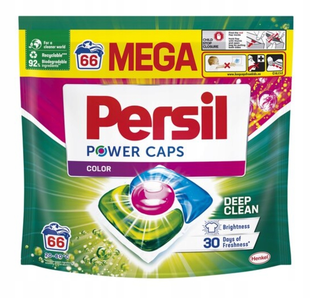 Persil Power Caps — капсулы для стирки цветных тканей с технологией Deep Clean Plus содержат уникальную комбинацию активных ингредиентов, которые борются со стойкими пятнами. . Стиральное средство проникает глубоко в волокна, удаляя мельчайшие частицы пятен для получения безупречного эффекта и блеска одежды. Наслаждайтесь идеальной чистотой и длительной свежестью. Капсулы Persil Power Caps эффективны при низких температурах, даже от 20°C.