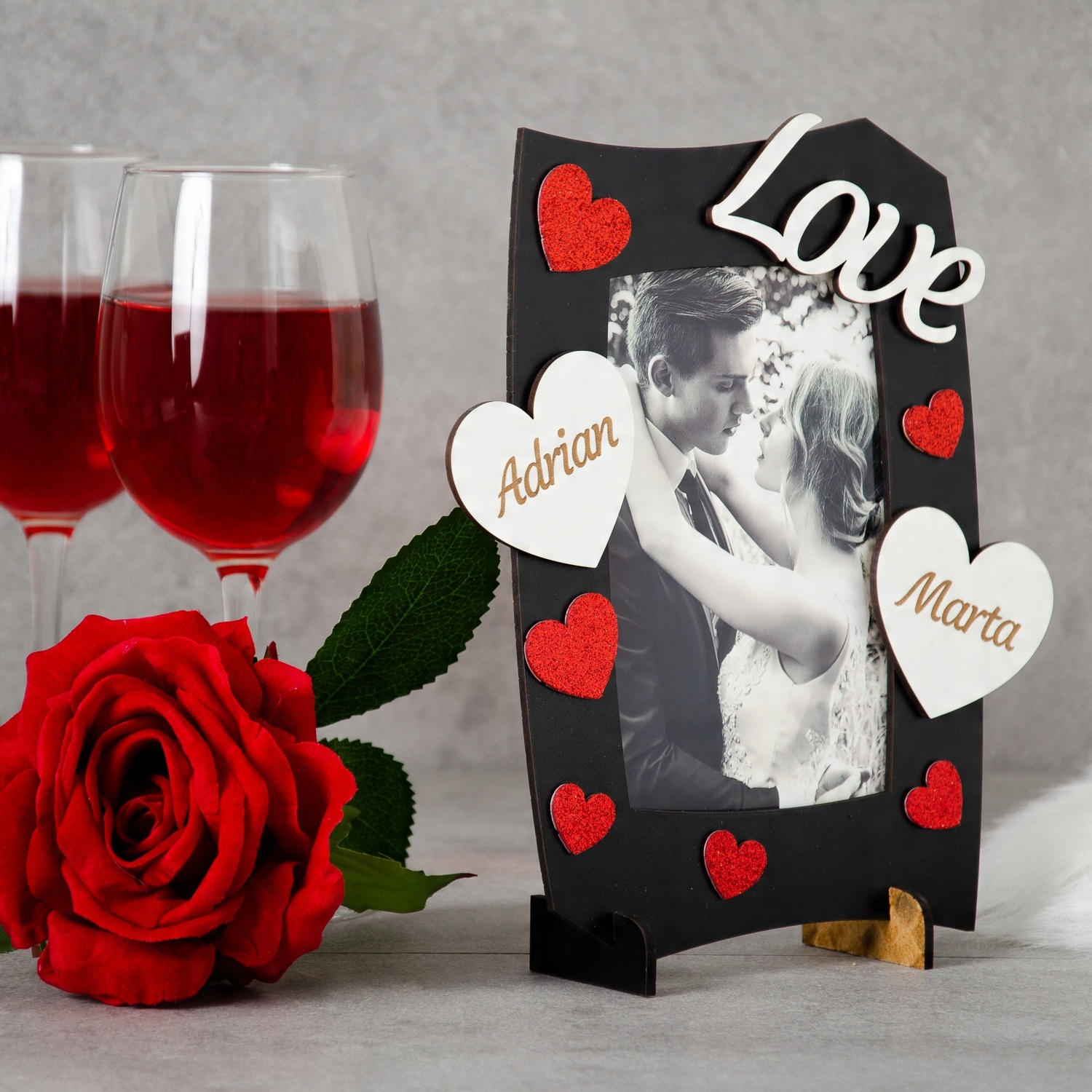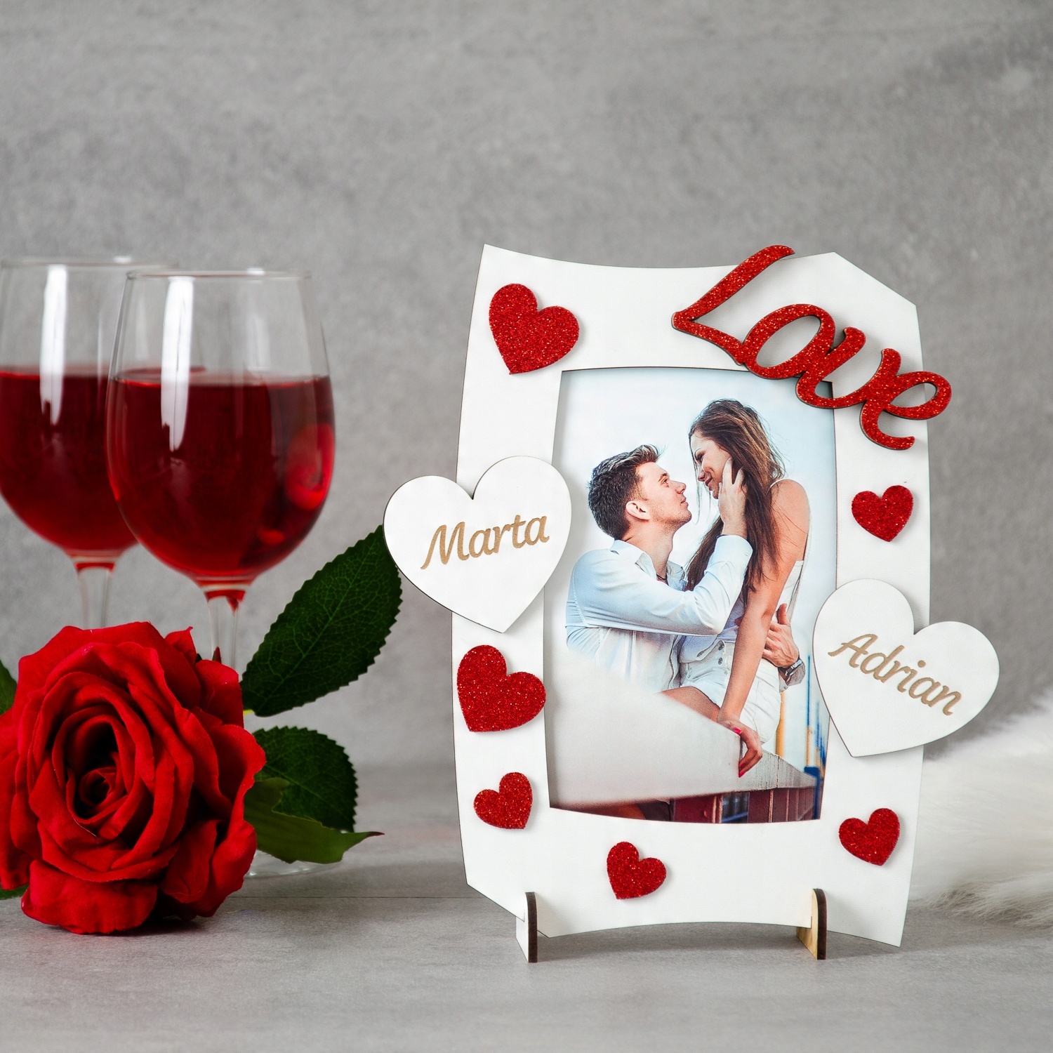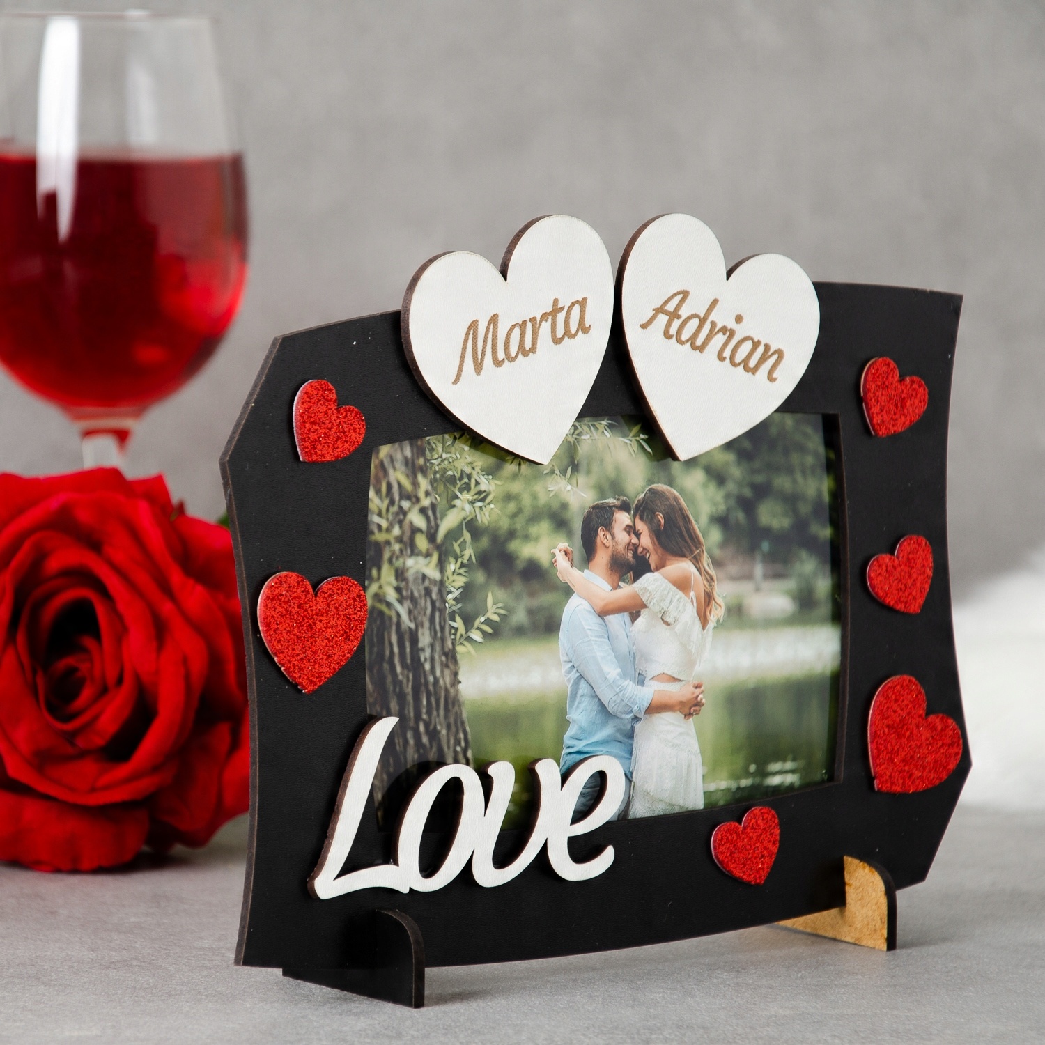 Предметом аукциона является красивая персонализированная рамка ко Дню святого Валентина. Идеально подойдет в качестве подарка близкому человеку. Рамка персонализирована в виде сердечек с вашими именами.