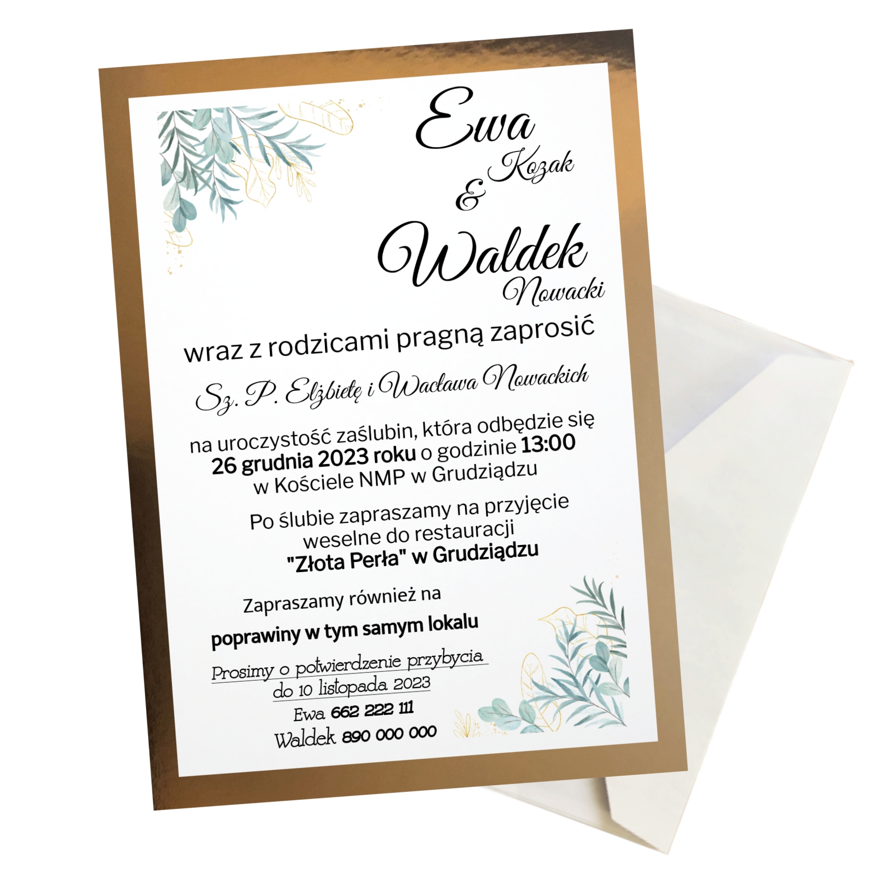 - Белый конверт прилагается к приглашению< /li>