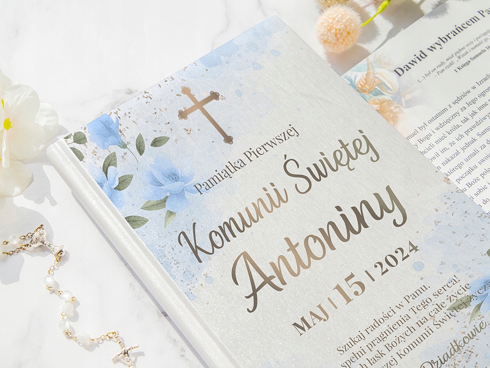Что делает нашу иллюстрированную Библию еще более особенной? Именная обложка для Первого причастия вашего ребенка.