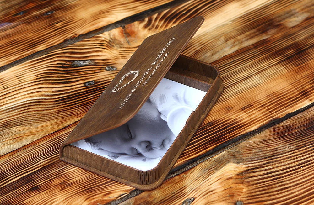 Шкатулка очень тщательно изготовлена из древесины березы. Это отличный сувенир, который вы можете с радостью показать своим друзьям и близким. Помимо фотографий, в коробке также есть место для флэш-накопителя.