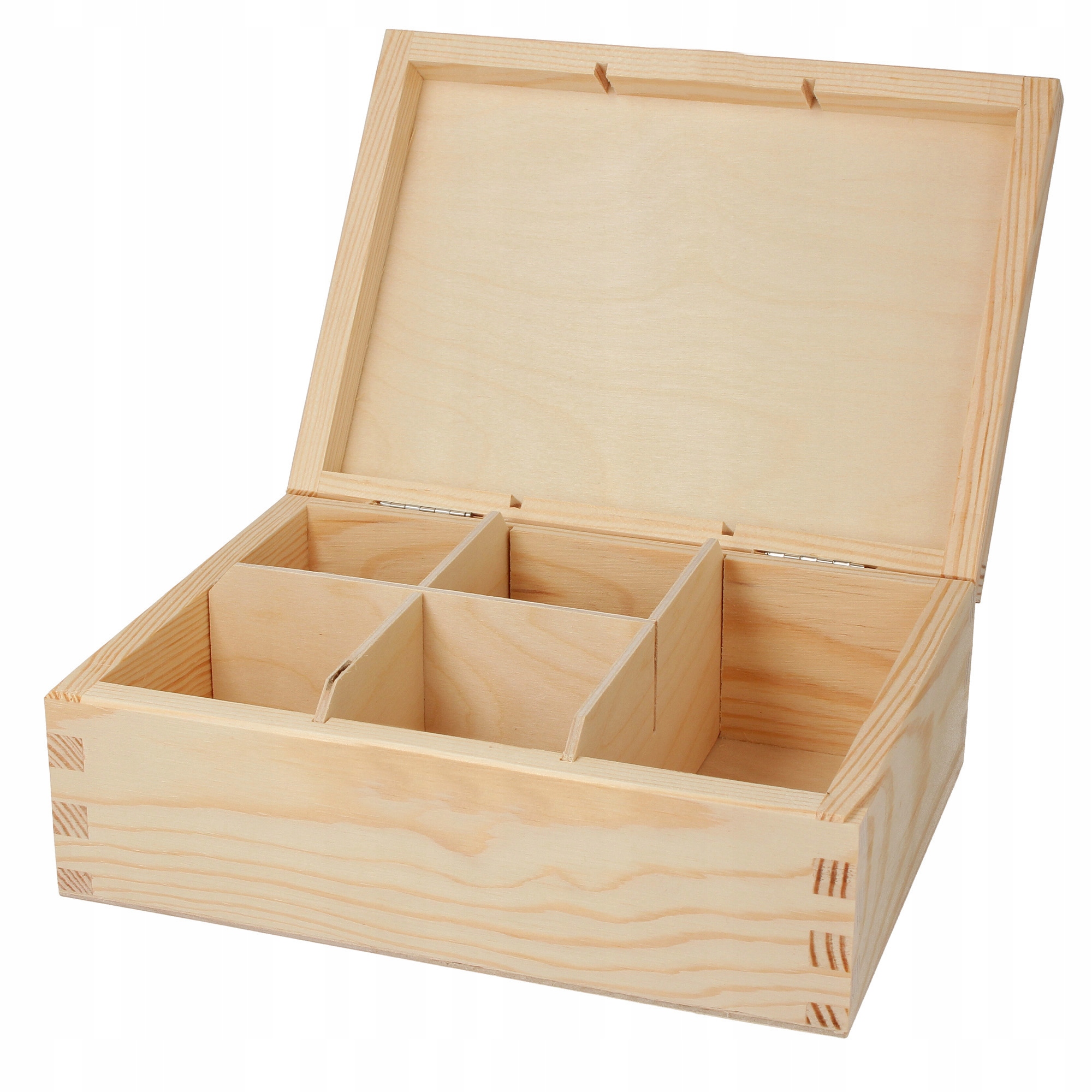Деревянная шкатулка с отделениями, которую можно украсить самостоятельно и подарить близкому человеку. Простота и высокое качество изготовления позволяют ящику придать элегантность любому интерьеру.
