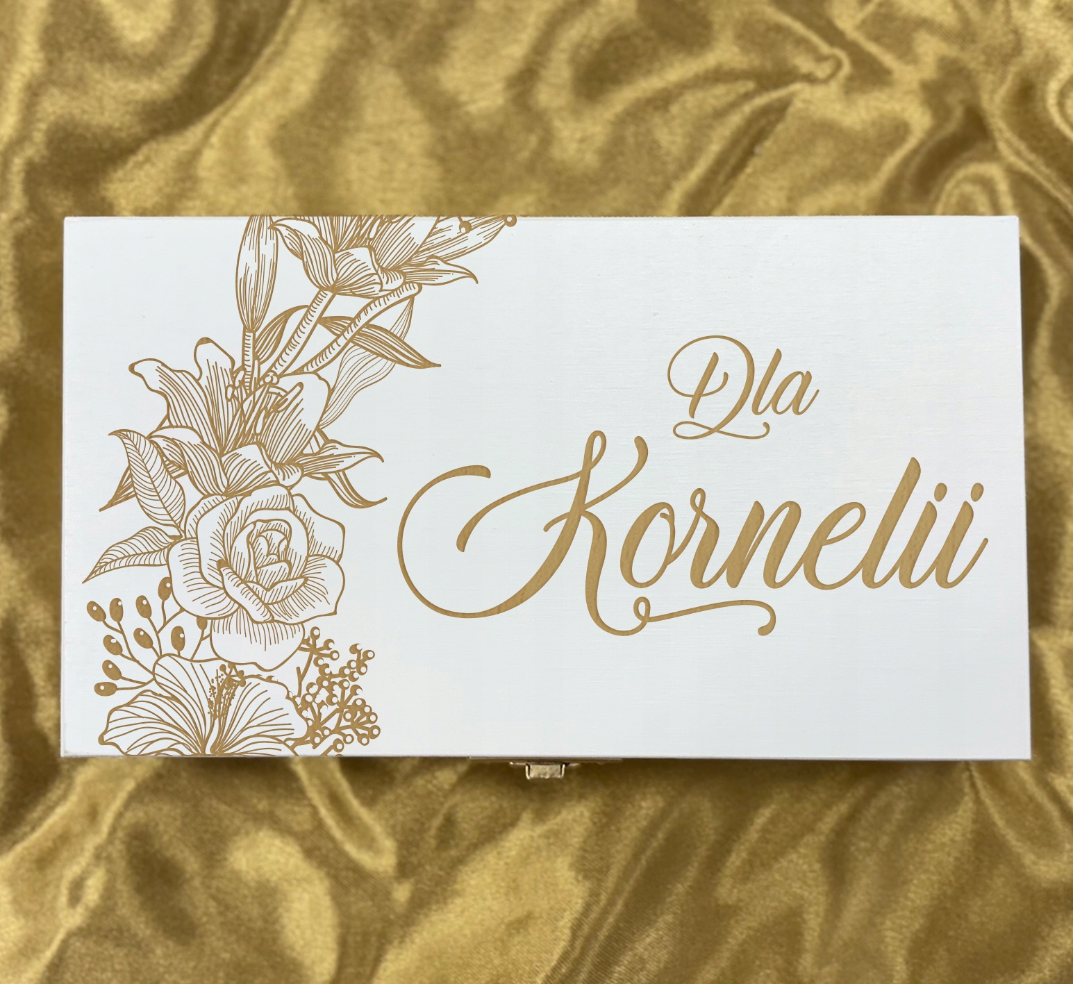 - Гравировка на крышке: цветочный мотив + любое имя ребенка.