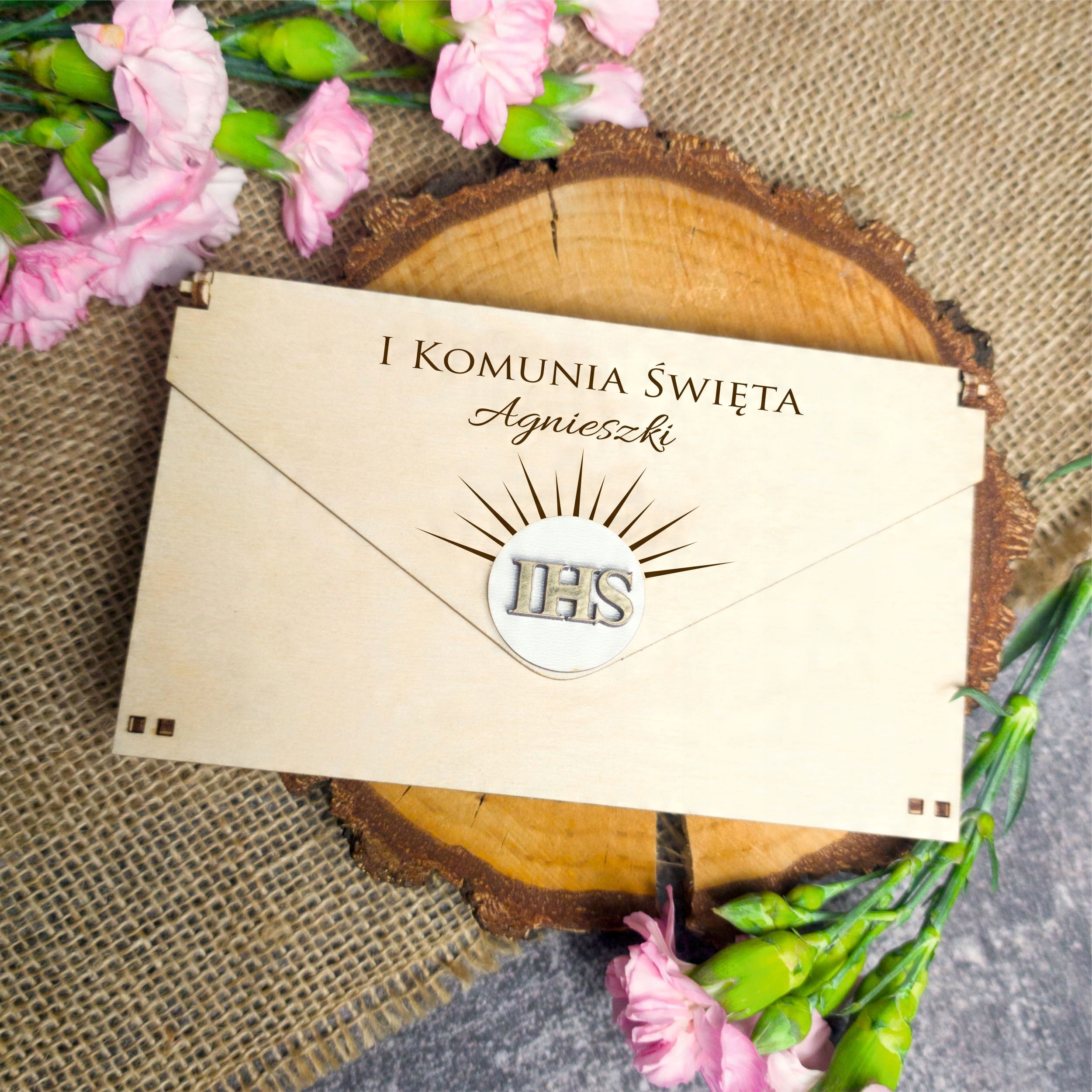 Элегантный деревянный конверт для причастия с хозяином — персональный подарок для первого причастия