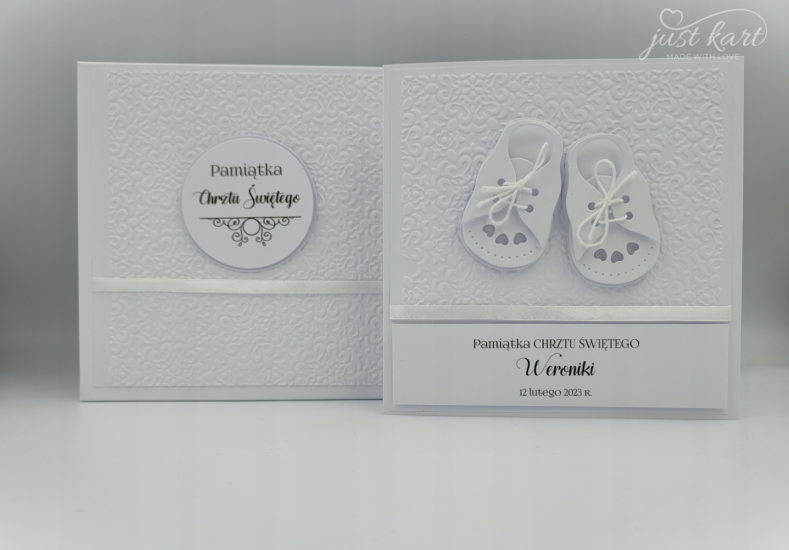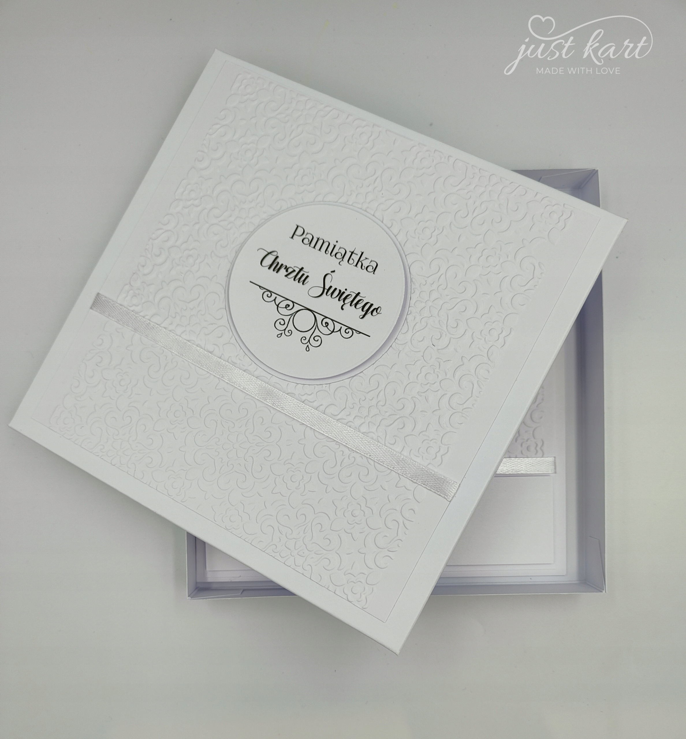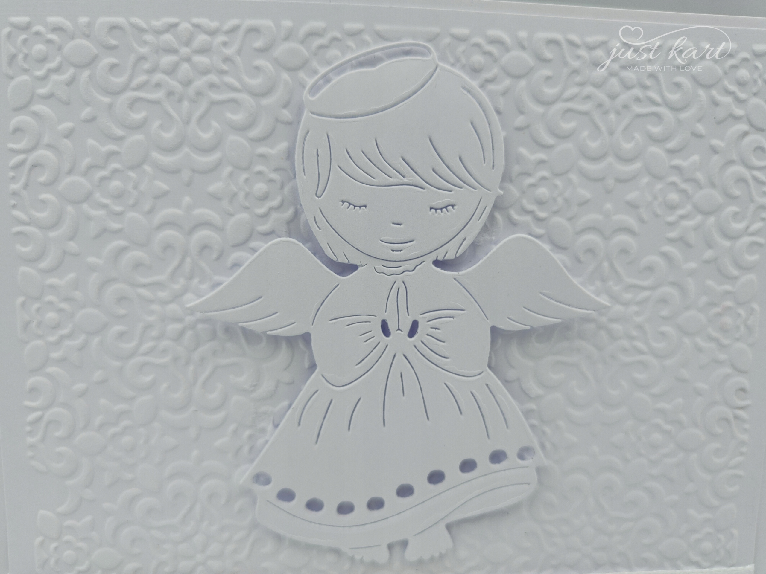 Нежная, впечатляющая и элегантная открытка белого цвета. Прекрасный сувенир о Святом Крещении.