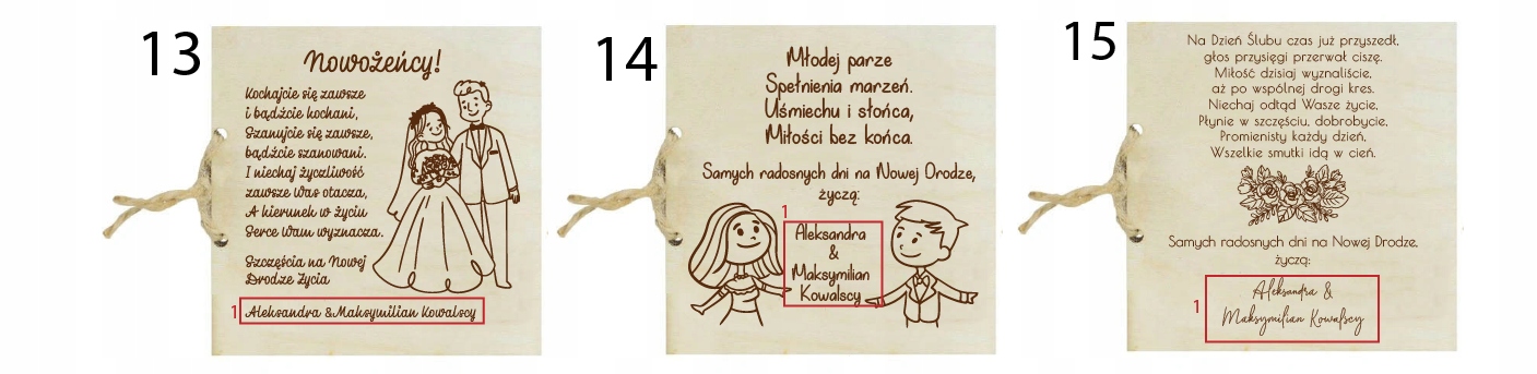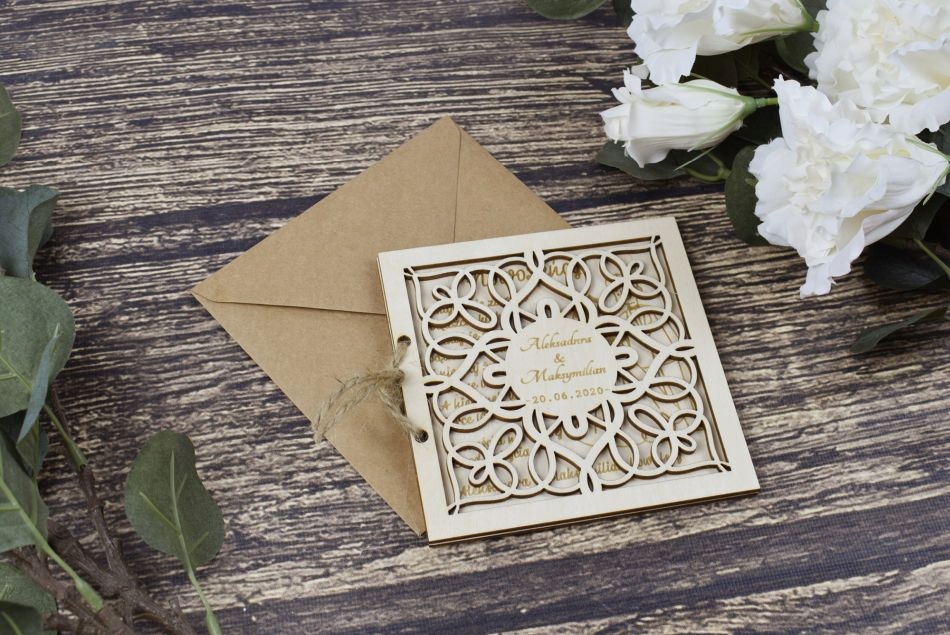 Поздравления и пожелания, переданные молодоженам в виде выгравированной надписи на деревянной открытке, станут оригинальной альтернативой традиционным решениям.