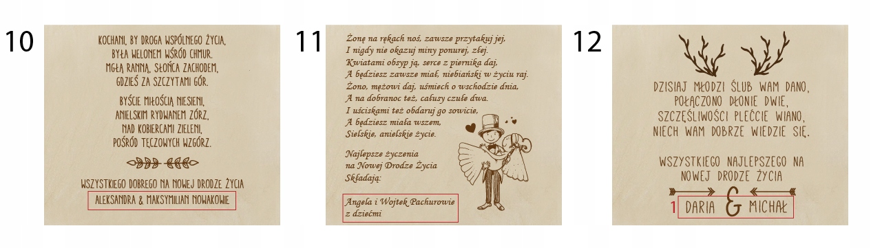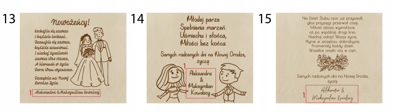 Поздравления и пожелания, переданные молодоженам в виде выгравированной надписи на деревянной открытке, станут оригинальной альтернативой традиционным решениям.