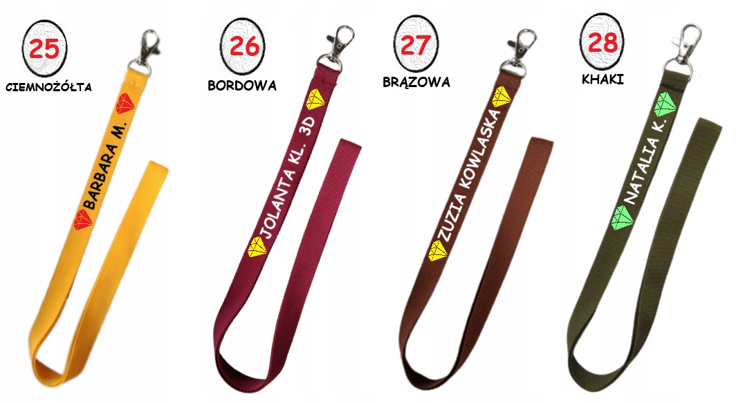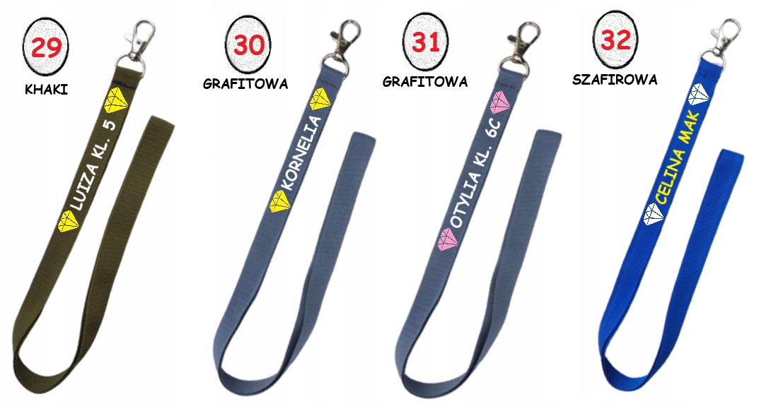 * Поручник (на серебряном карабине) во многих цветах, включая черный, белый, синий, бургундский, зеленый, красный, желтый и т. Д. Версии) - Различные параметры для выбора Имя/Фамилия/Класс, или любая надпись,
