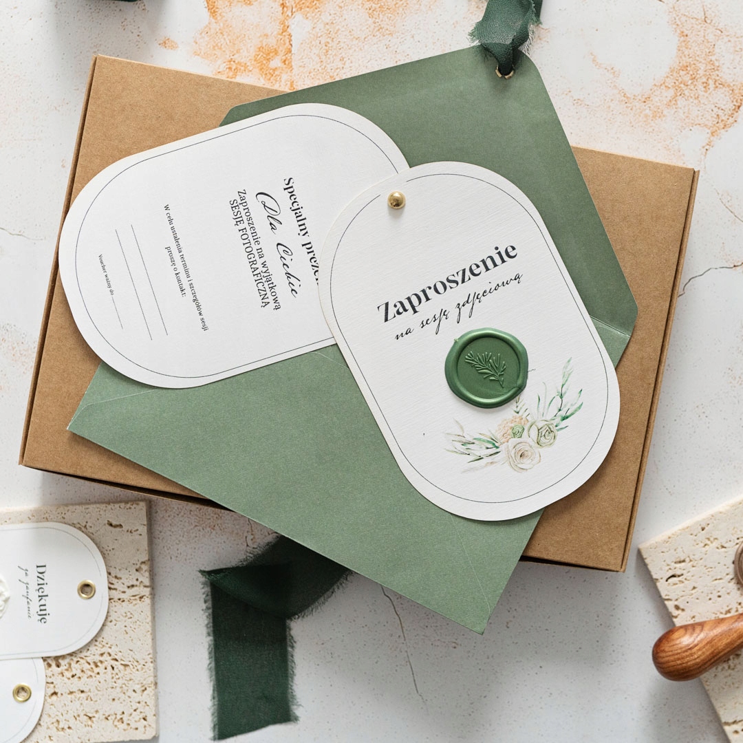 Персонализированный ваучер, приглашение на сессию с конвертом. Лак и лента