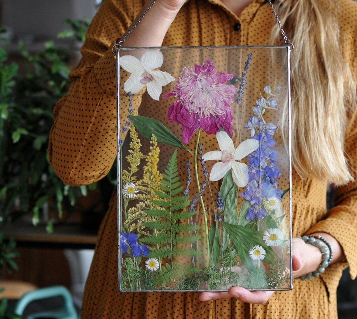Personalizowany prostokątny dekor, kwiaty urodzeniowe, suszone kwiaty