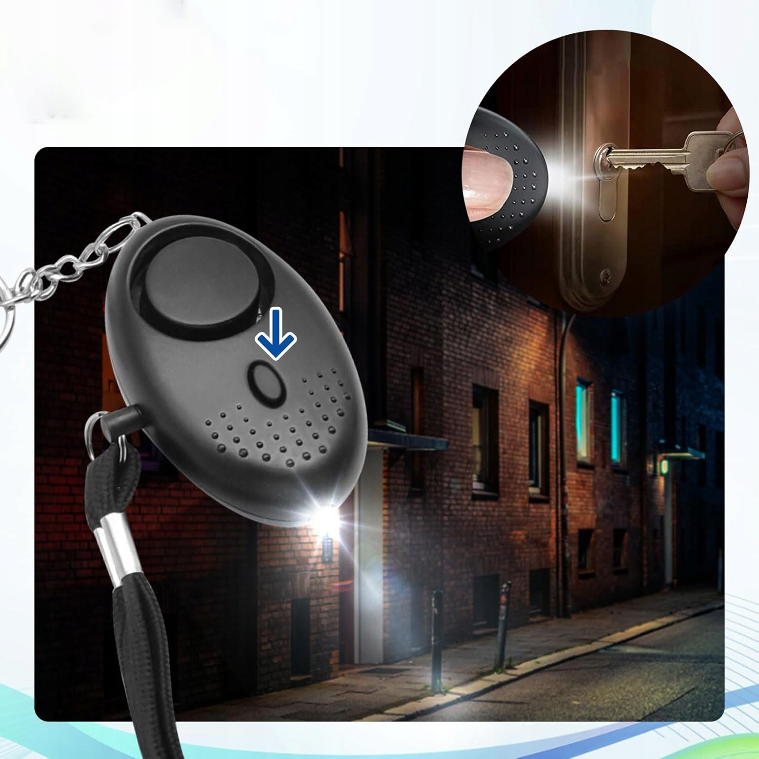 Встроенная мощная светодиодная лампа помогает видеть в темноте. Идеально подходит для освещения темных переулков, тенистых лестниц и замочной скважины при открытии входной двери.