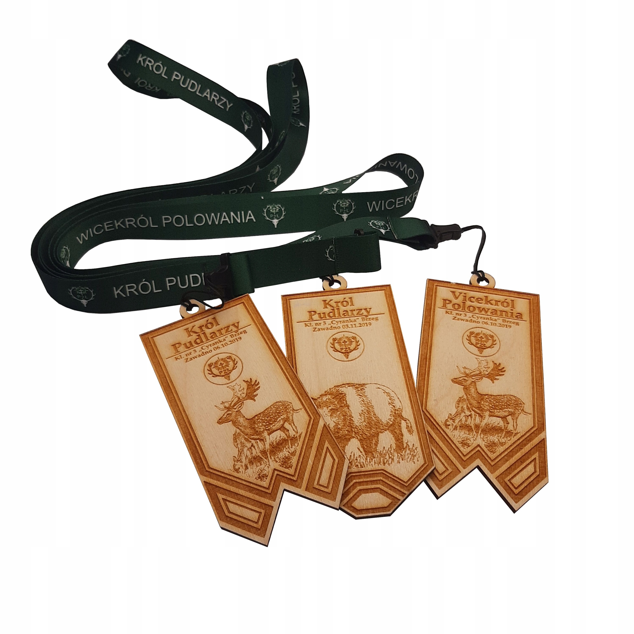 К каждой медали прилагается шнурок Польского охотничьего общества с тремя надписями на выбор - «Король охоты». , «Наместник «Охотничьи» и «Король пуделей»