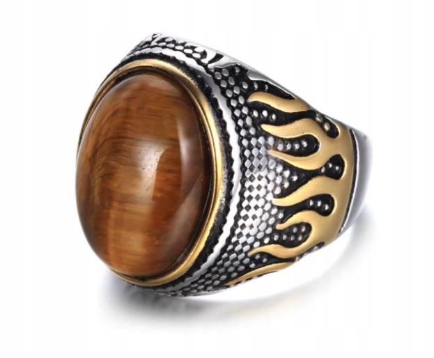 КОЛЬЦО С ПЕЧАТКОЙ С КАМЕНЕМ ТИГРОВЫЙ ГЛАЗ ОГОНЬ ПЛАМЕНЬ R25