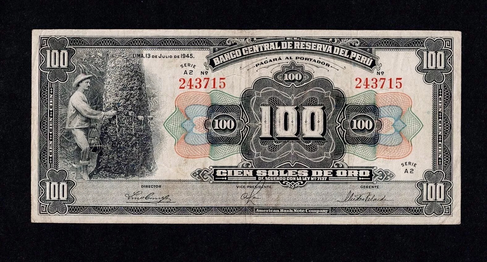 ПЕРУ 100 SOLES 1945 П-69 Аа.3 ВФ++ РІДКІСНИЙ