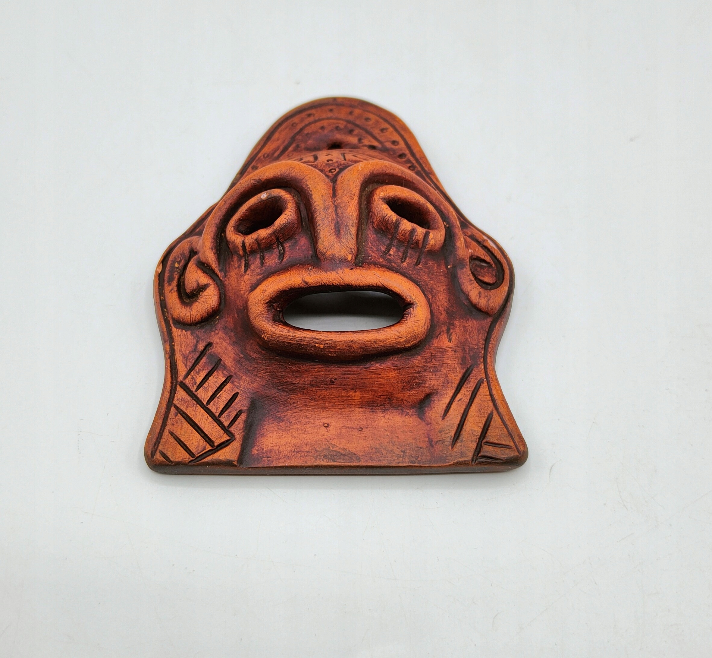 ПЕРУ интересная маленькая коллекционная маска БОГА, доколумбовая терракотовая статуэтка.