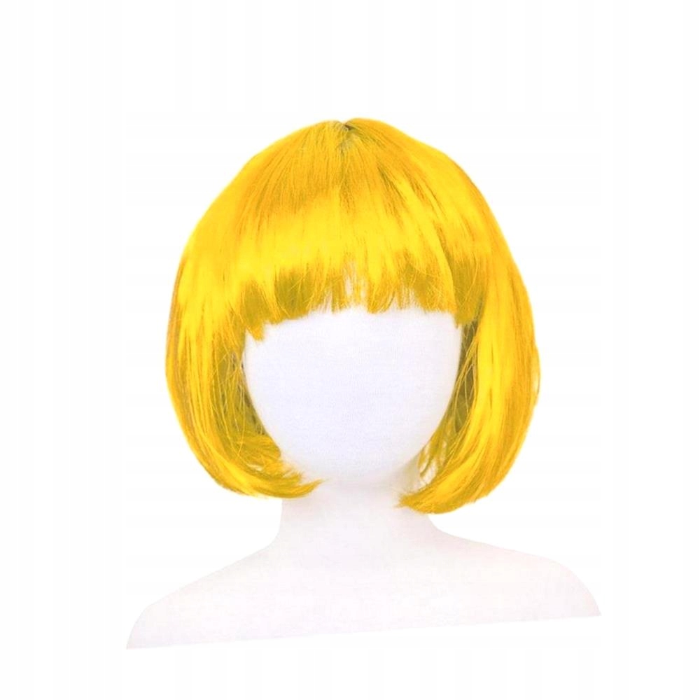Парик из синтетических волос желтого цвета. Прическа боб с челкой. Дополняют стиль костюмы для карнавала, Нового года и Хэллоуина. Длина волос примерно 25 см. Парик универсального размера.
