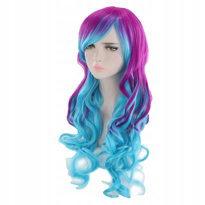 Парики синие фиолетовые волосы длинные волнистые вьющиеся на сетке W86