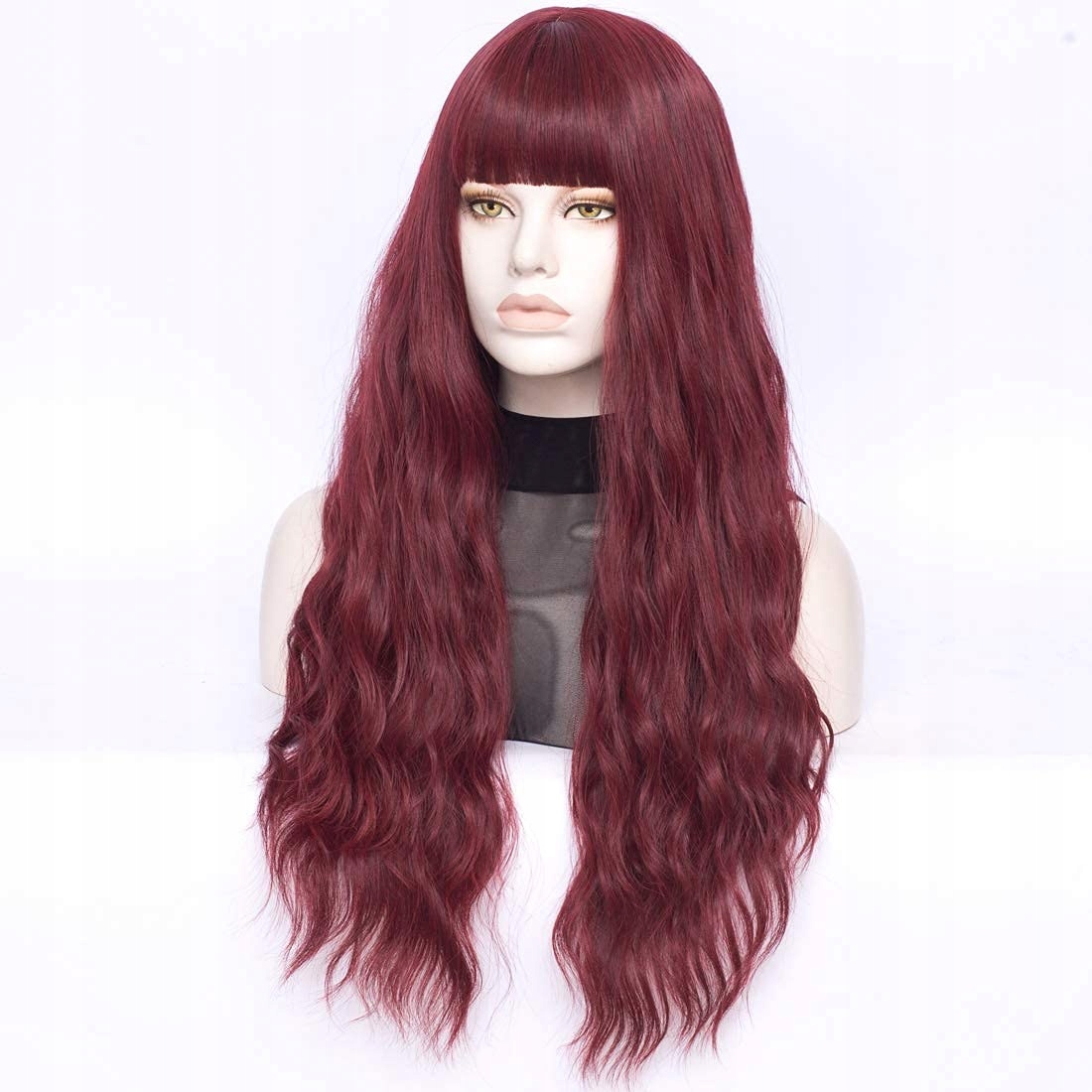 Peruka syntetyczna z grzywką loki FVCENT Burgund 61cm Gęsta