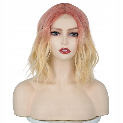 Парики волос блондинка розовый длинный боб волны на сетке W66