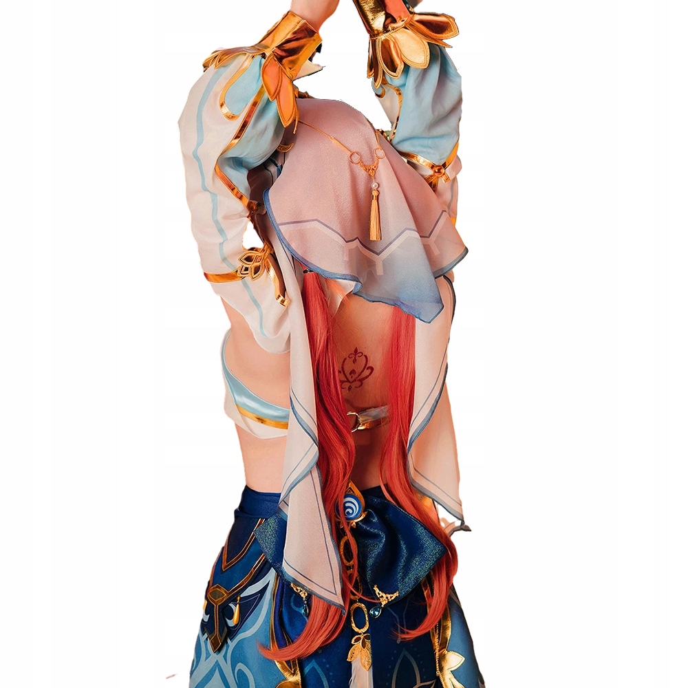 -Орандский парик, смоделированный на волосах Nilou, известный из RPG Genshin Empact, с длинными волосами и ударами, связанными с двумя пони. волокнистый материал с хорошей воздухопроницаемостью и естественным внешним видом.