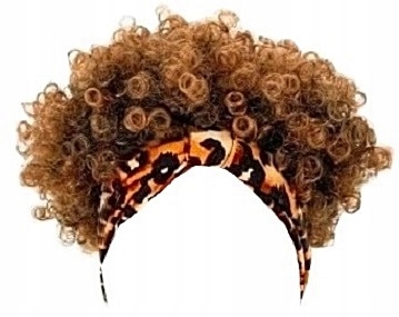 - каштановый парик с короткими вьющимися волосами, переплетенными в косу спереди.