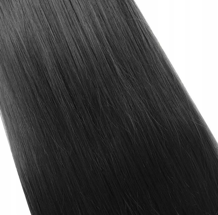 - Прямые, блестящие, темные волосы.