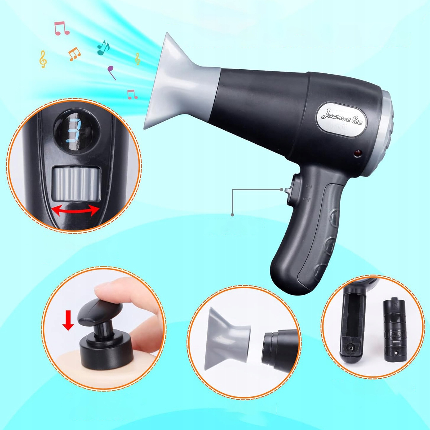 🎈 изысканное моделирование и реалистичный внешний вид делают детей еще больше участвовать в ролях. Пояс для волос имеет регулируемый дизайн, подходящий для детей всех возрастов. Кованые бритвы, поддельные ножницы, поддельные бритвы и т. Д. Изготовлены из высококачественных материалов, безопасны и размыты, что делает их более безопасными для использования. Электрический фен может издавать звук рабочей сушилки, благодаря какой роли более реалистичны.