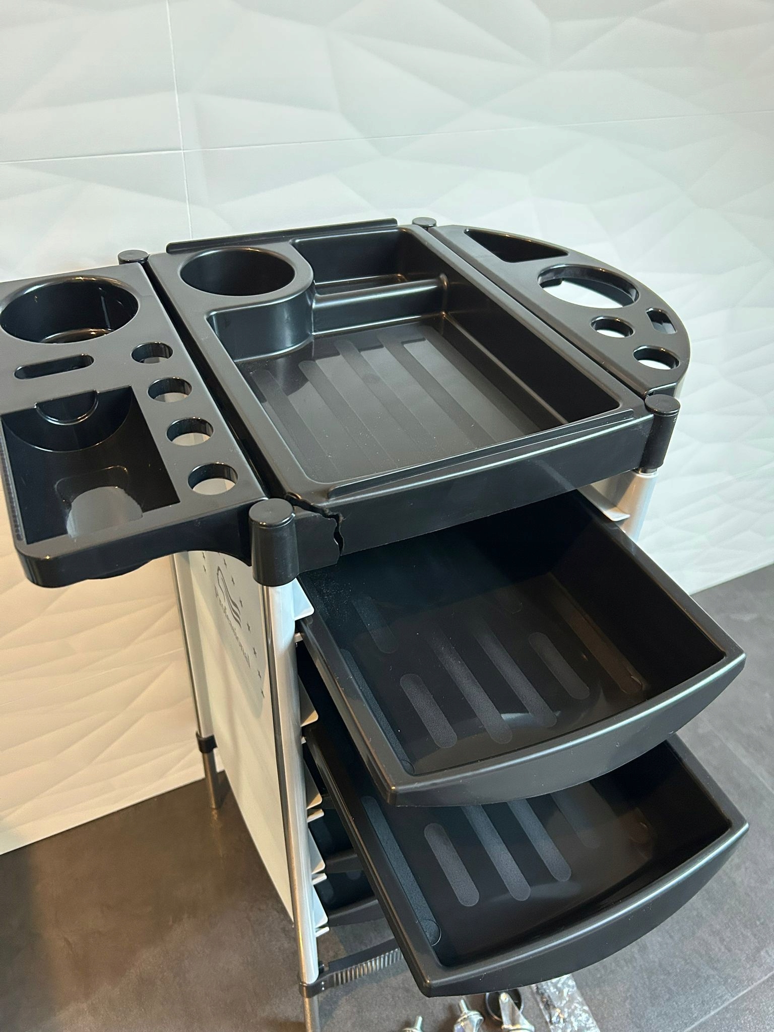➡ Установленное и классифицированное хранение: благодаря 6 уровням и 5 ящикам, эта парикмахерская коляска может обеспечить много места для хранения для удовлетворения ваших ежедневных потребностей. Его также можно использовать для классификации и хранения различных предметов. Эти универсальные колеса обеспечивают плавное движение и хорошую стабильность