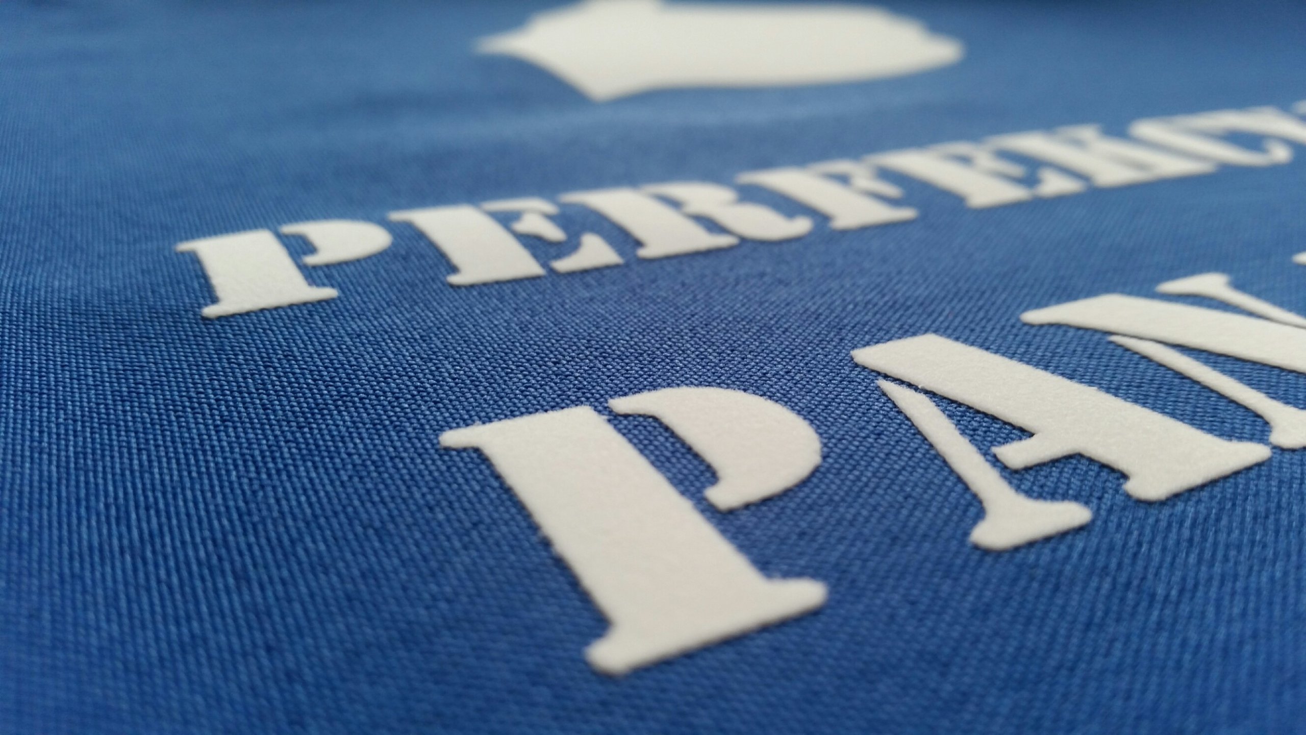 Печать, сделанная с использованием тепловой передачи - Фольга Флока - очень долговечный метод. Это высококачественная фольга, напоминающая бархат.
