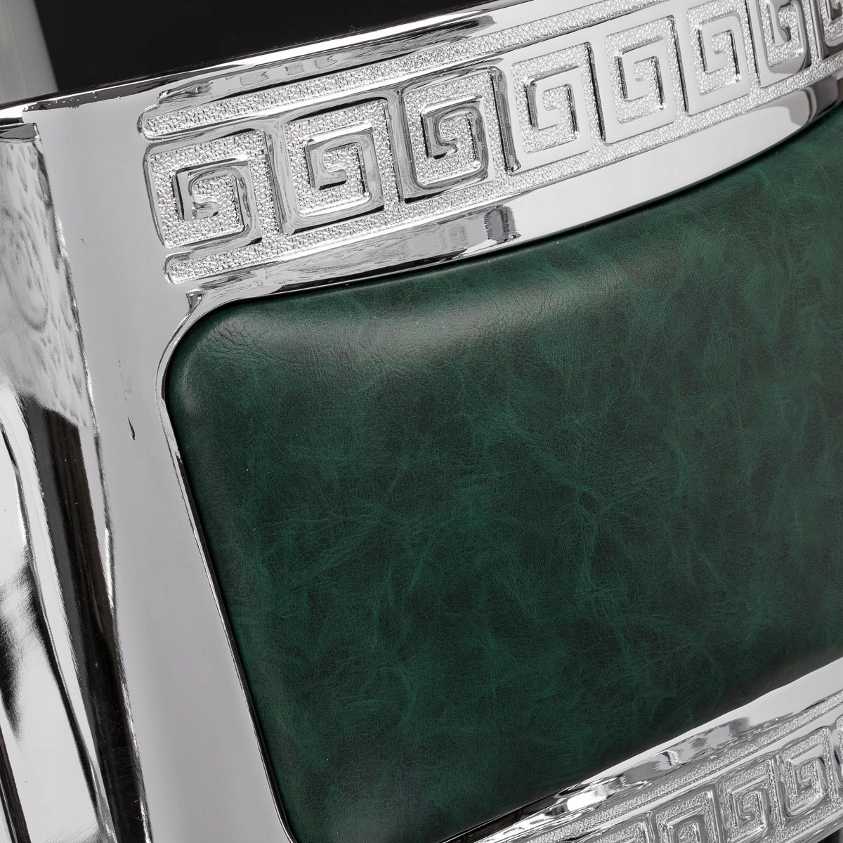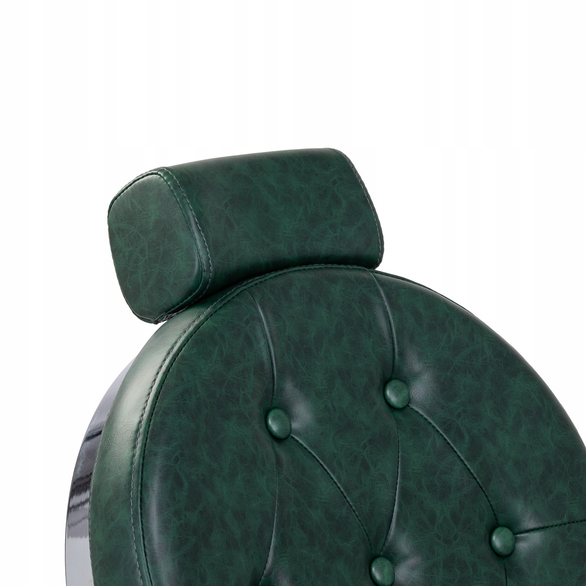 Прочная конструкция основания обеспечивает стабильность и высокий комфорт использования. Наполнитель сиденья выполнен из прочного, устойчивого к деформациям пенопласта, а обивка – из приятной на ощупь синтетической кожи с полуматовым покрытием, обеспечивающей долговечность мебели и ее комфортное использование в течение длительного времени. Они также делают технику устойчивой к влаге, долговечной и простой в уходе. Обложка зеленого цвета с стежкой и декоративными пуговицами придает ей неповторимый характер. Кресло с характерным дизайном, отсылающим к винтажному стилю, прекрасно вписывается в атмосферу парикмахерских, подчеркивая их неповторимую атмосферу.