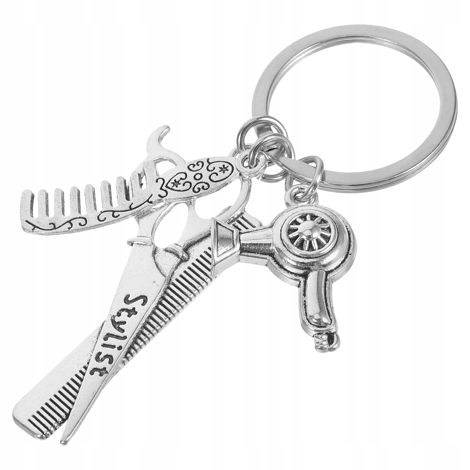 ✅Парикмахерский ключ украшен замысловатыми деталями, включая миниатюрную расческу и фен. Этот стильный аксессуар — идеальное решение для стилистов, которые хотят, чтобы ключи были в безопасности и были легко доступны. Брелок изготовлен из материалов, поэтому он выдерживает ежедневный износ. Это продуманный подарок для любого парикмахера.