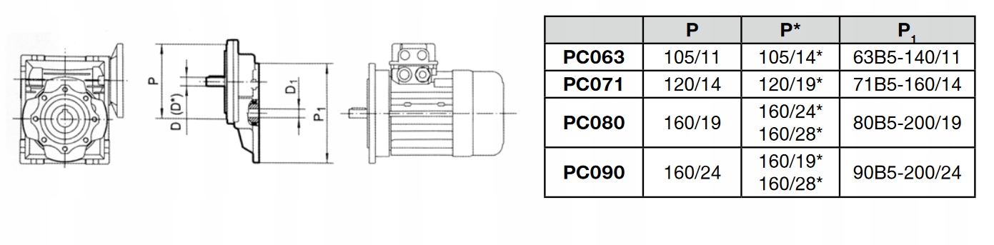 Первичный редуктор Мотор PC 080 i=3 80B5/100B14