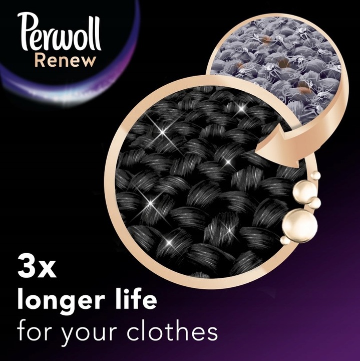 Perwoll Renew Black — это жидкость для стирки, которая защищает, восстанавливает и обновляет цвет вашей темной одежды, благодаря чему ваша одежда будет выглядеть как новая после каждой стирки.