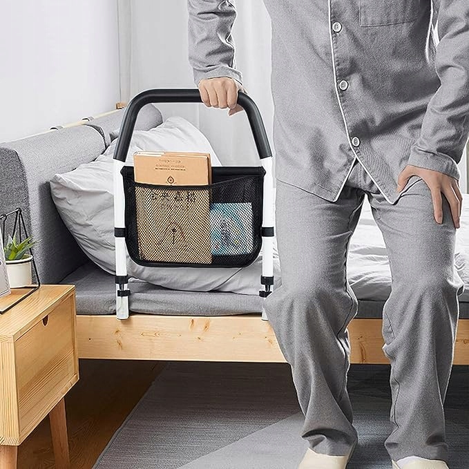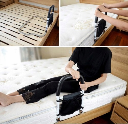 Поручень для подъема с кровати, поручень из высокоуглеродистой стали с карманом для хранения, переносной складной поручень безопасности для кровати, для пожилых людей, беременных женщин, детей и людей, находящихся на выздоровлении.