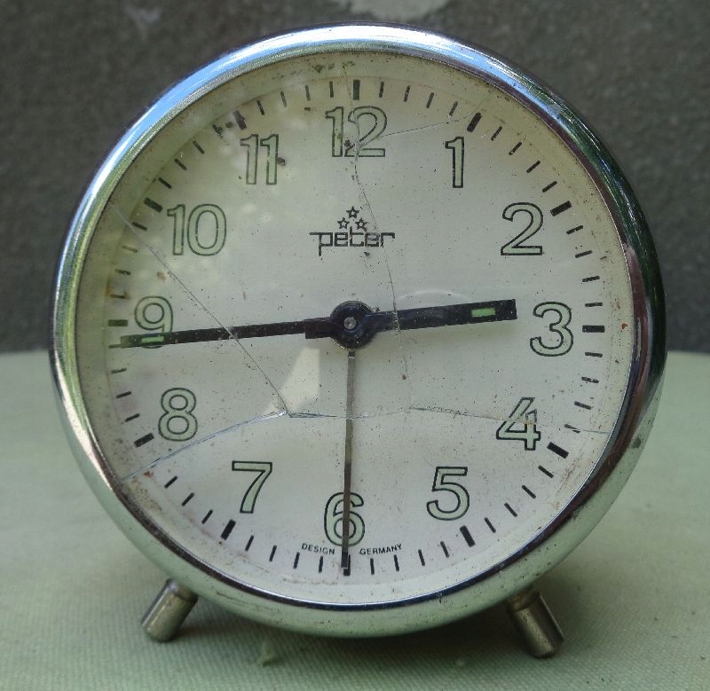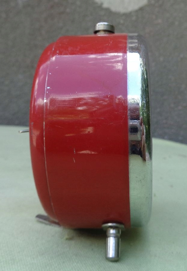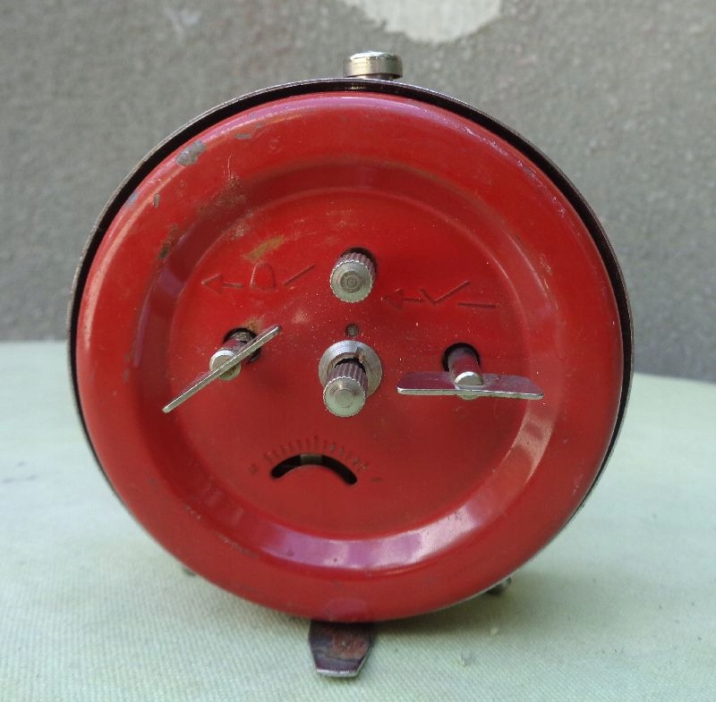 Интересный, интересный, коллекционный будильник Питера 1970-х годов. Подпись находится на циферблате и видна на фотографиях. Циферблат будильника имеет арабские часовые цифры, покрытые флуоресцентным слоем. Стрелки будильника также покрыты этим слоем. У будильника металлические ножки. Корпус будильника изготовлен из металла и покрыт красной краской. У будильника треснутая стеклянная крышка. Механизм часов неисправен и требует ремонта у часовщика. Всем рекомендую.