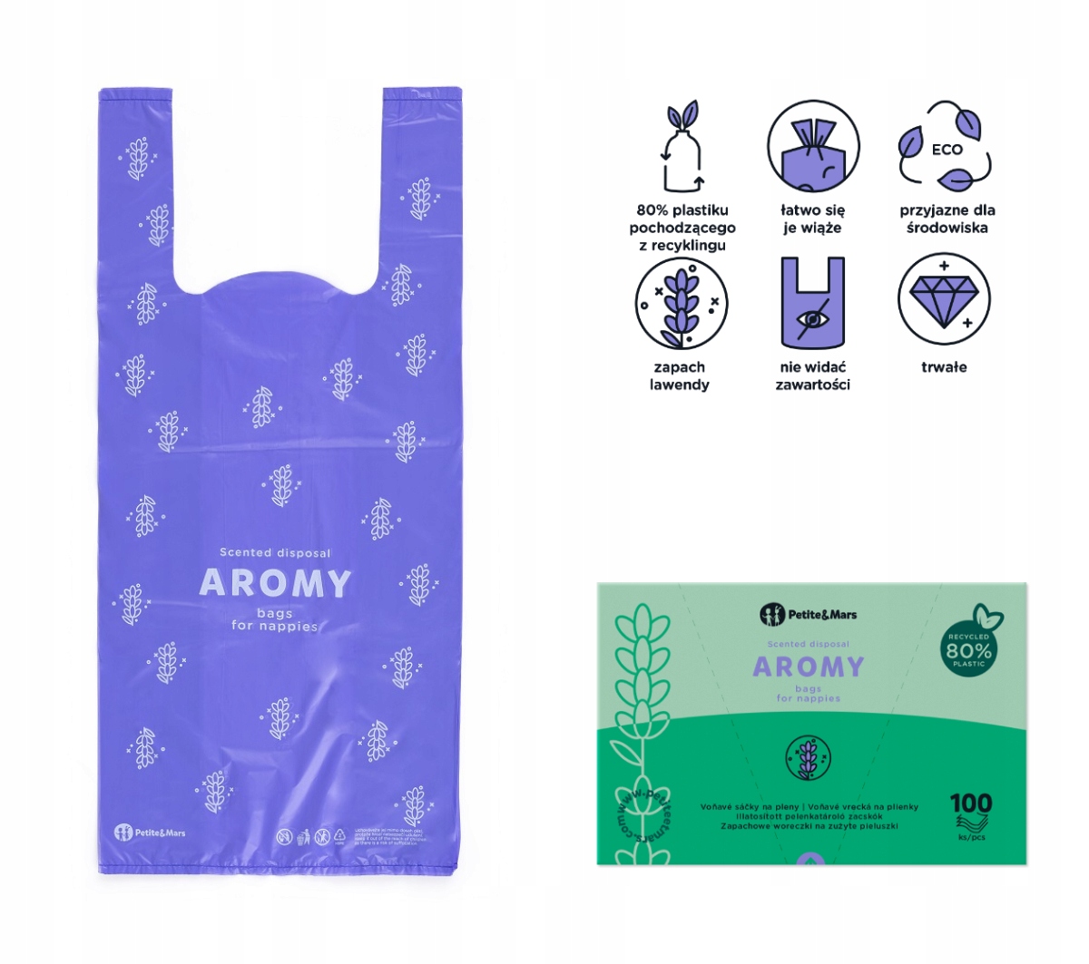 До 80 % материала, используемого для производства пакетов для использованных подгузников AROMA, поступает из вторичной переработки. Выбирая наши сумки, вы не только заботитесь о гигиене и комфорте, но и поддерживаете защиту окружающей среды.