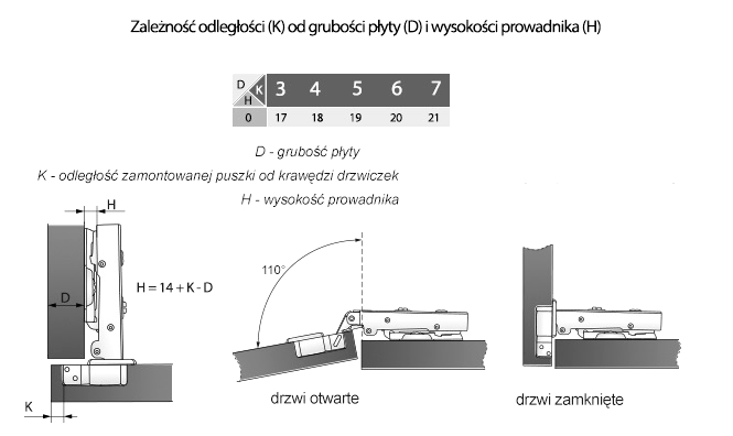 - Угол открывания фасада: 110*