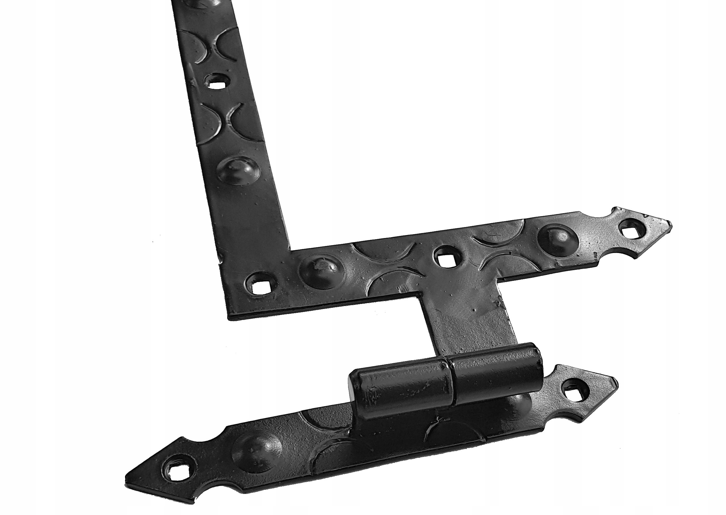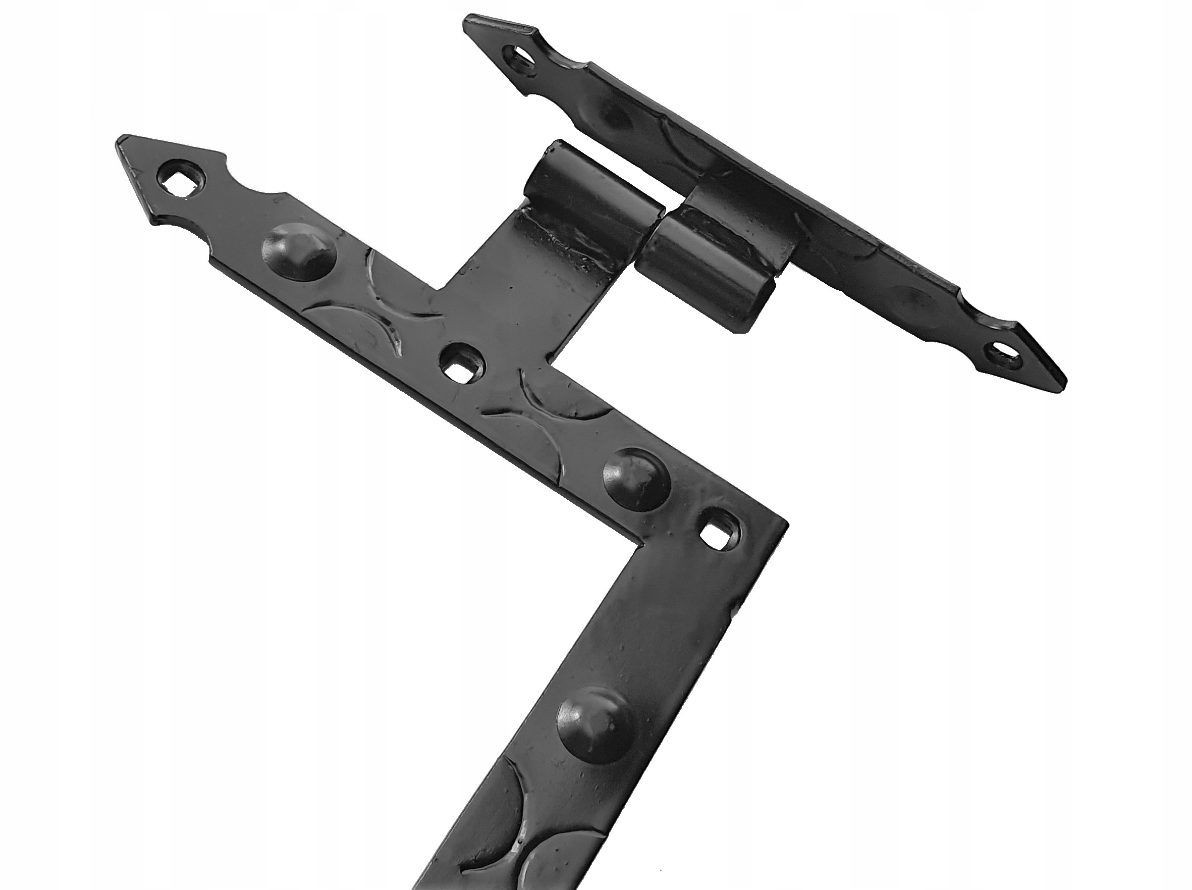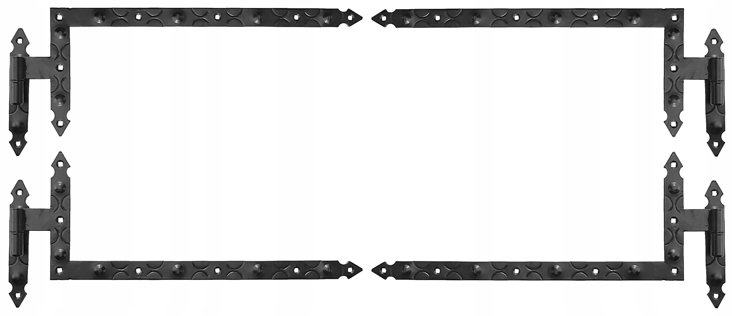 Эти 8 элементов образуют функциональный и прочный комплект в стиле Подгалье. Петля подходит для установки в дерево, металл или кирпич. Обеспечивает плавное движение створок при их закрывании и открытии.