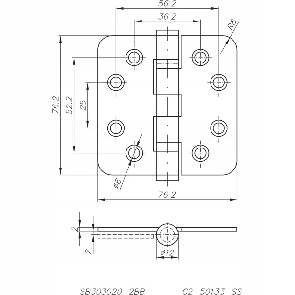 ПЕТЛЯ С ЗАГРУГЛЕННОЙ НАКЛАДКОЙ 76x76мм НЕРЖАВЕЮЩАЯ СТАЛЬ