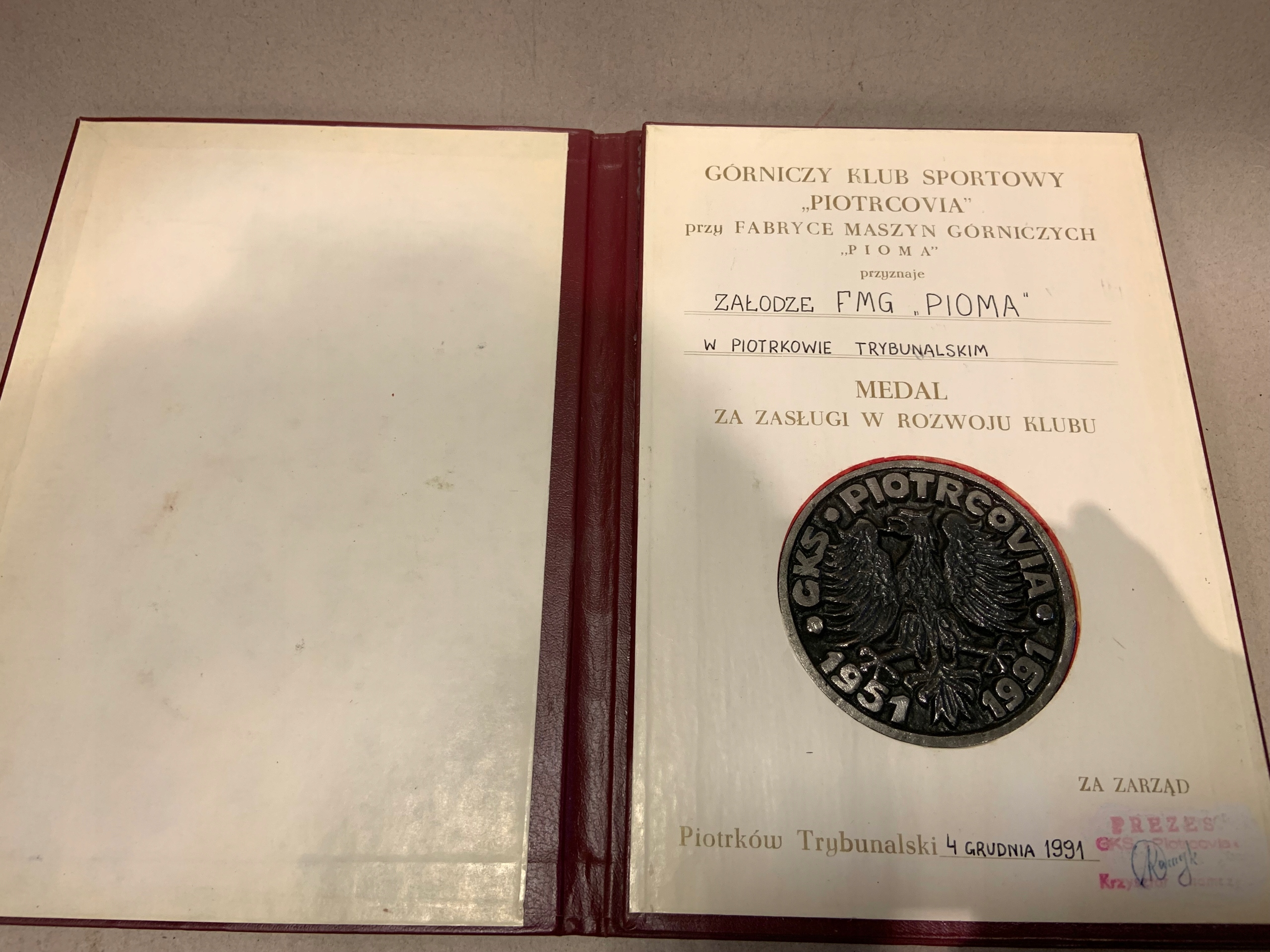 ПЕТРКІВ РЕЖИМ. МЕДАЛЬ ЗА ЗАСЛУГИ ПЕРЕД КЛУБОМ ПЕТРКОВІЯ ПРИ ЗАВОДІ FMG PIOMA