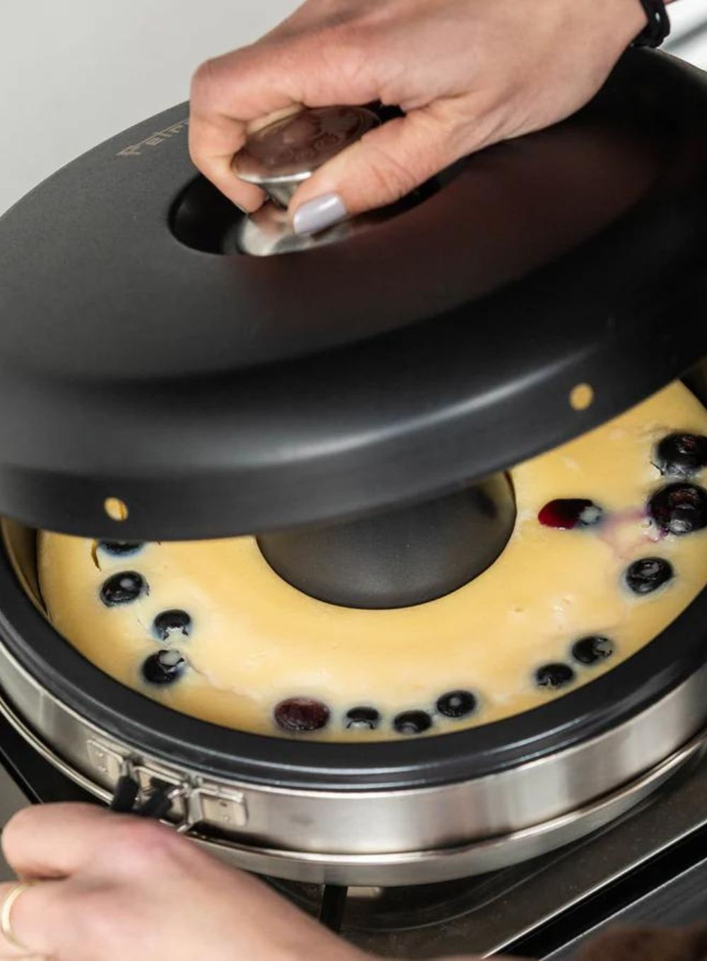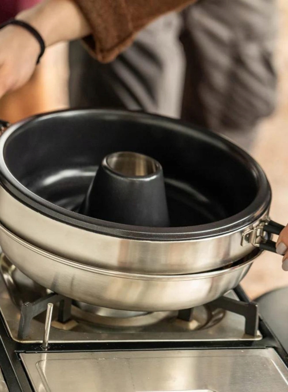 Походная печь имеет уникальную особенность — тройное распределение тепла, включающее верхний, нижний и боковой нагрев. Тепло поднимается от дна к форме для запекания и равномерно распределяется по блюду в трех разных направлениях благодаря продуманному распределению тепла и конструкции с двойными стенками: сверху, снизу и по бокам. В крышке имеются вентиляционные отверстия. Тепло циркулирует эффективно, а это значит, что разнообразные блюда в духовке получаются превосходными. От овощей, запеченных с сыром, до свежеиспеченных булочек и начинки чили кон карне – нет предела вашей фантазии.